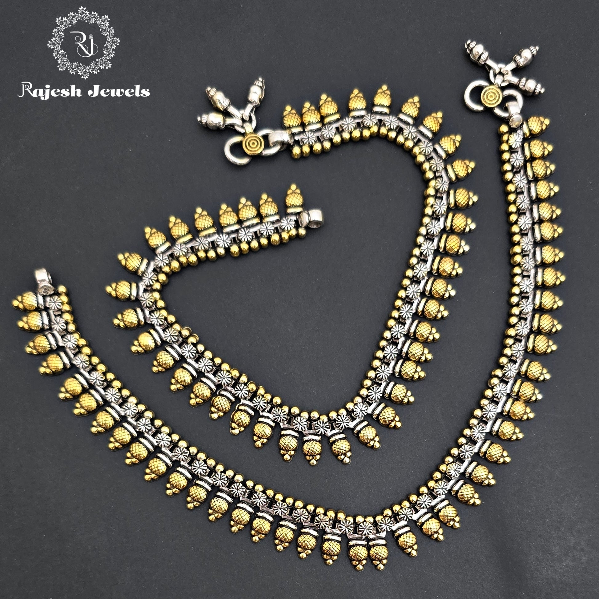 92.5 Pure Silver Oxidised Antique Finish Handmade Dual Tone Anklet.