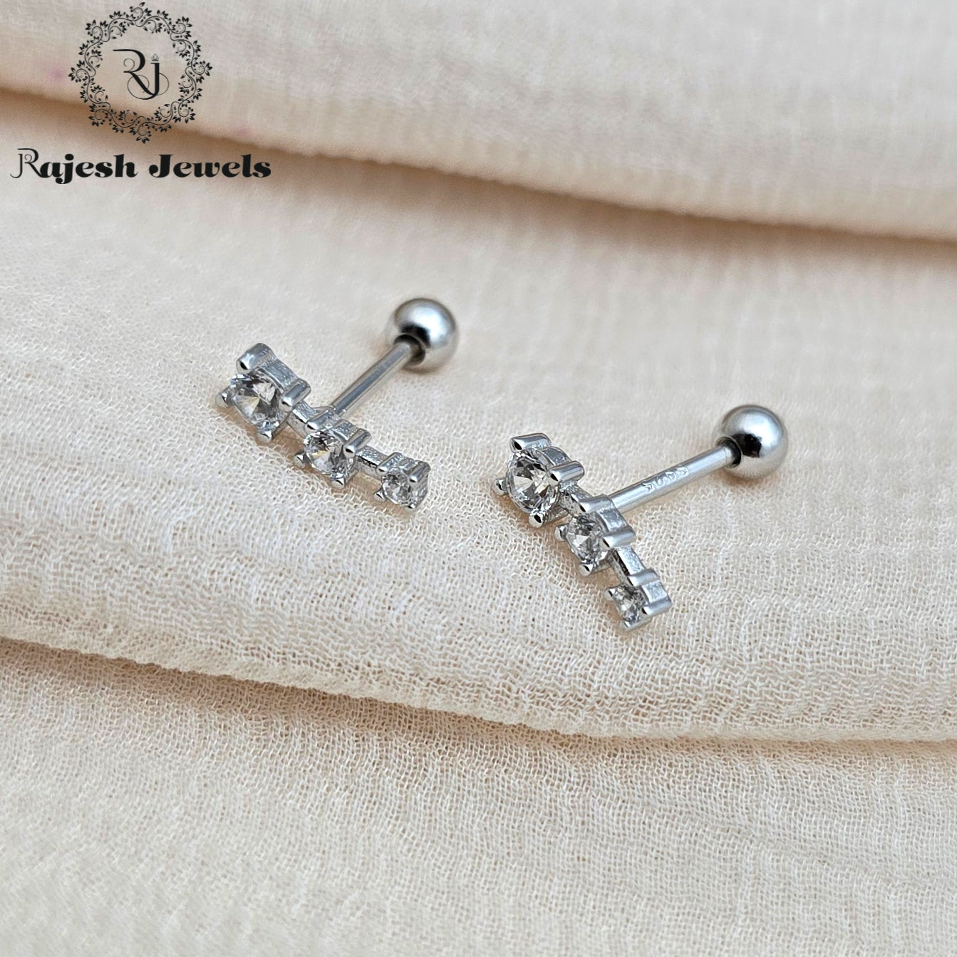 92.5 Pure Sterling Silver Cz 2nd Stud Cum Kid's Earrings Studded With Semi Precious Stone