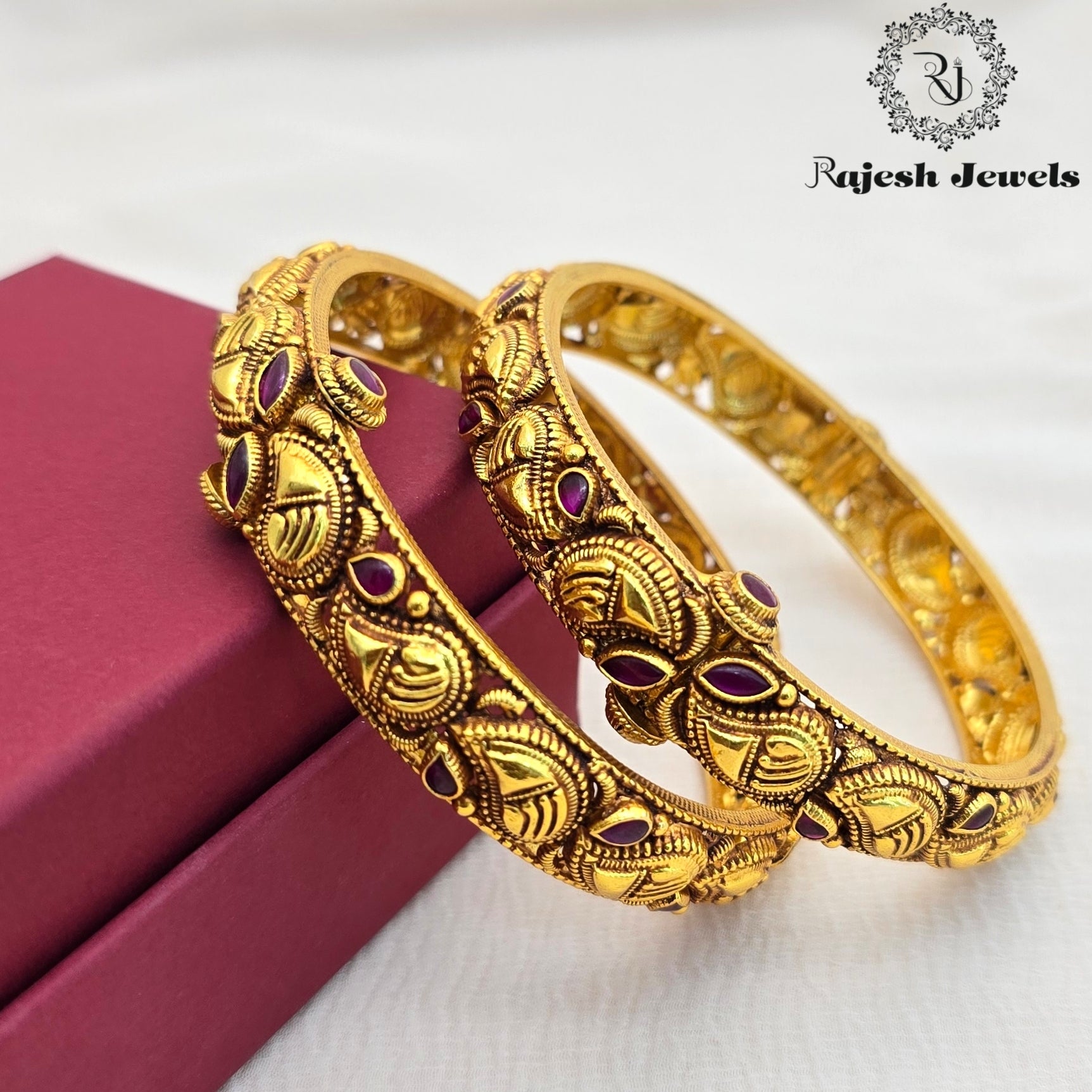 92.5 Pure Silver 22K Gold Plated Handmade Bangles Studded With Semi Precious Stones