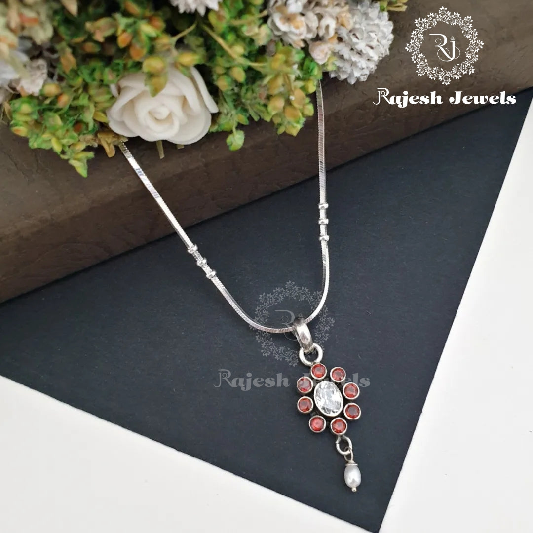 92.5 Pure Sterling Silver Neckchain & Pendant Studded With Semi Precious Stones.