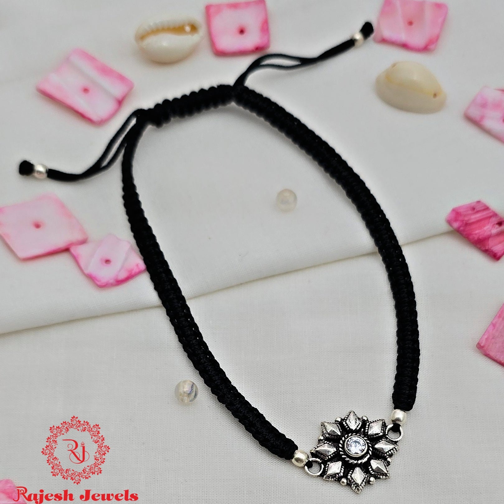 92.5 Pure Silver Oxidised Antique Finish Handmade Cutstone Nazariya Anklet