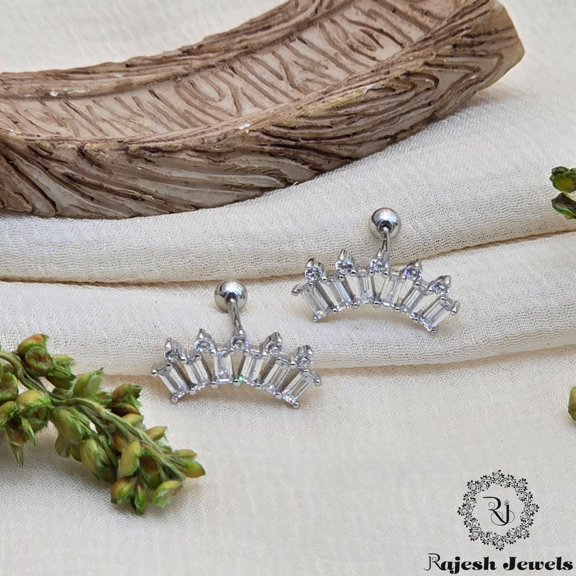 92.5 Pure Sterling Silver 2nd Stud Cum Kids Earrings Studded With Semi Precious Stones