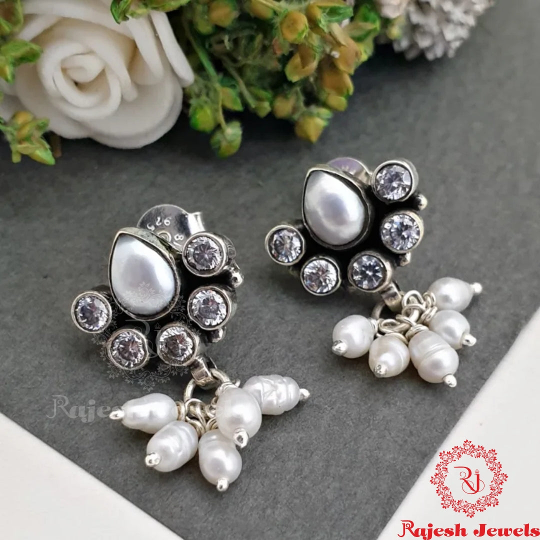 92.5 Pure Silver Oxidised Antique Finish Earrings Studded With Cutstones.