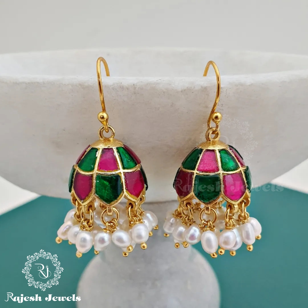 92.5 Pure Silver Temple Jumka Studded With Semi Precious Stones & 22K Gold Polishing