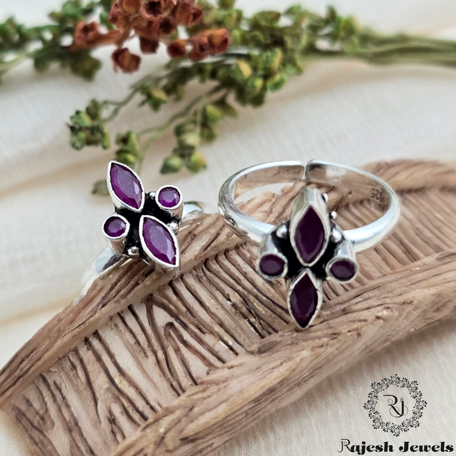 Enhance your everyday style with these 92.5 Pure Silver Oxidised Antique Finish Handmade Toe Rings, beautifully studded with semi-precious cutstones.