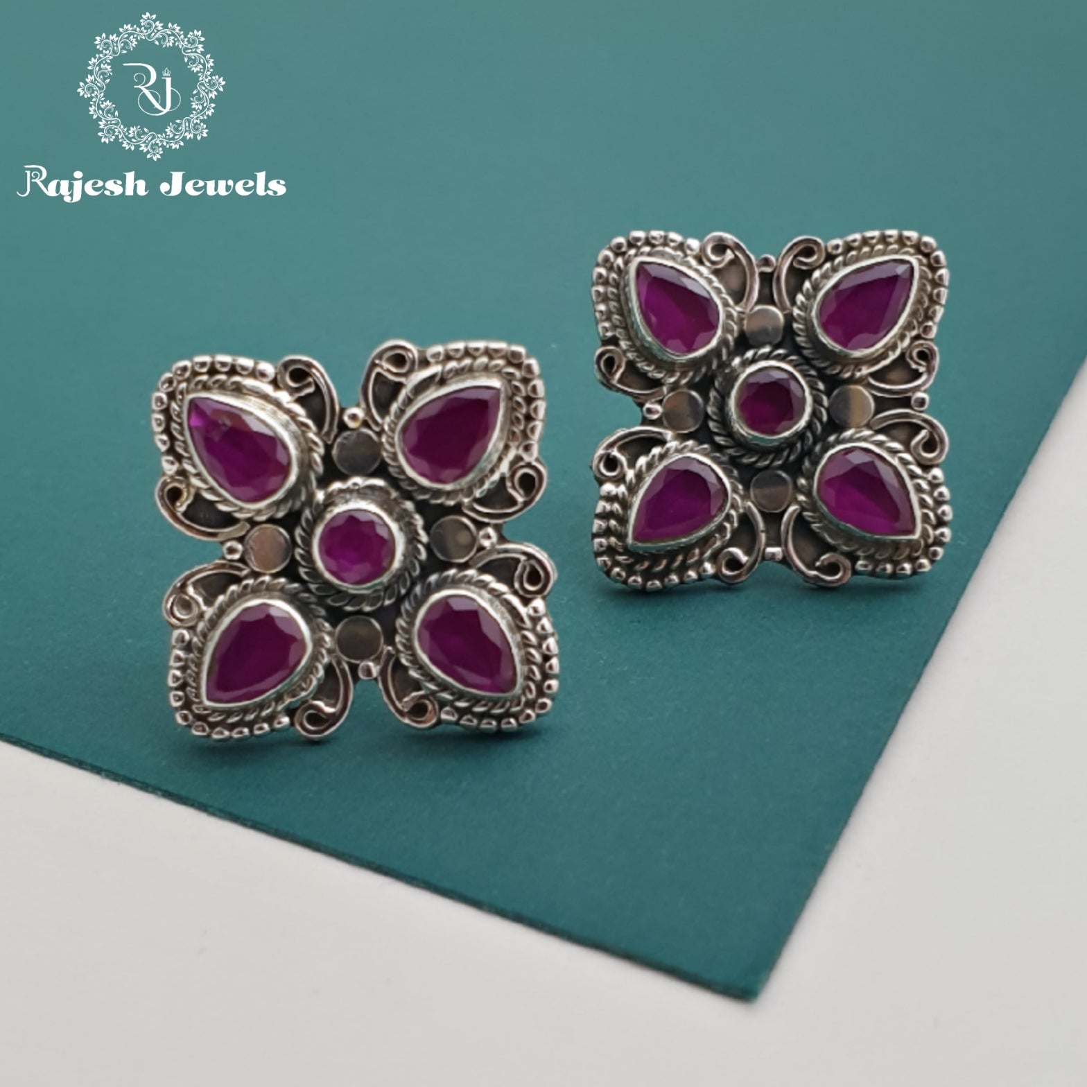 92.5 Pure Silver Oxidised Antique Finish Handmade Earrings Studded With Semi Precious Stones