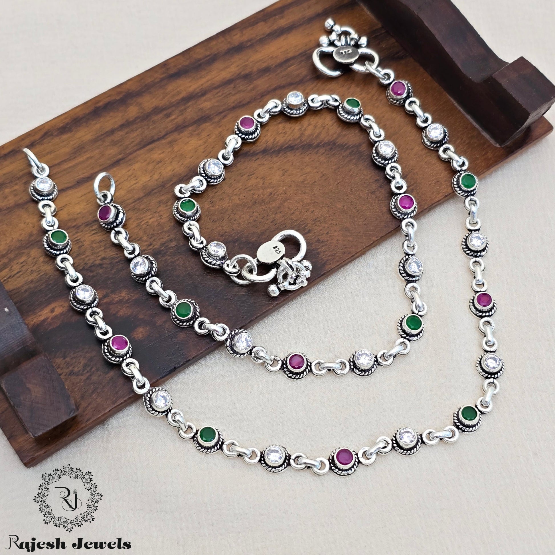 92.5 Pure Silver Oxidised Antique Finish Handmade Anklets Studded With Semi Precious Stones.