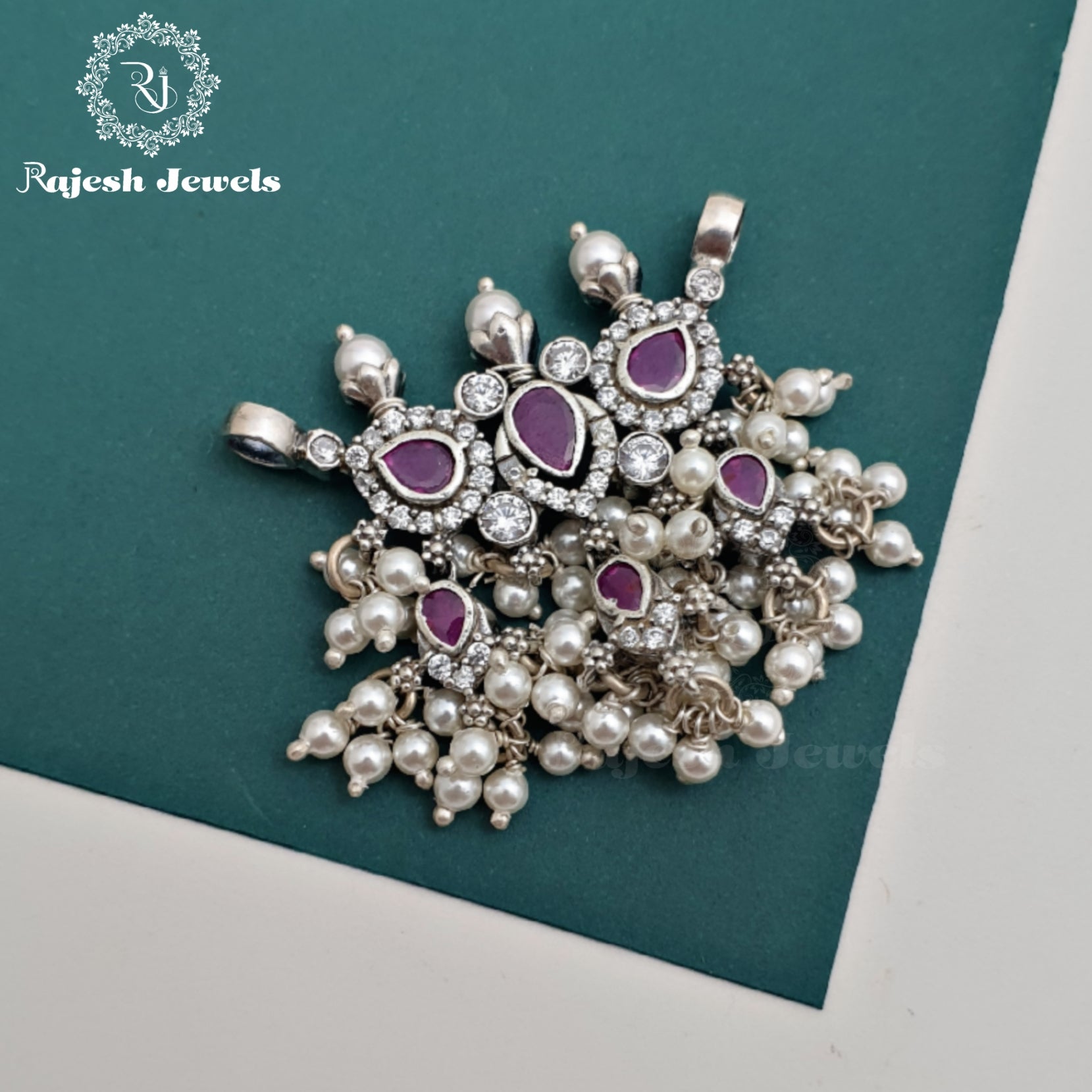 92.5 Pure Silver Oxidised Antique Finish Handmade Pendant Studded With Semi Precious Stones