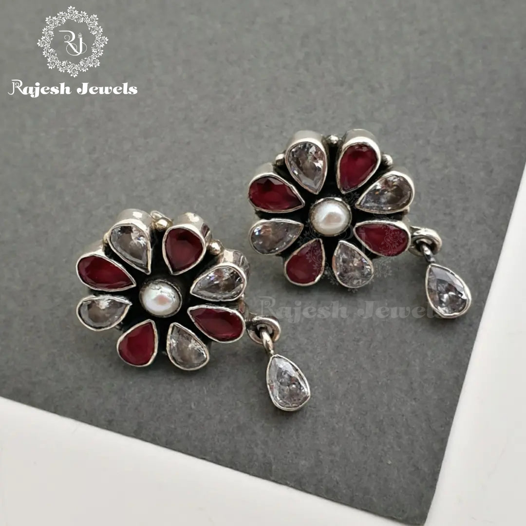 92.5 Pure Silver Oxidised Antique Finish Handmade Earrings Studded With Semi Precious Stones