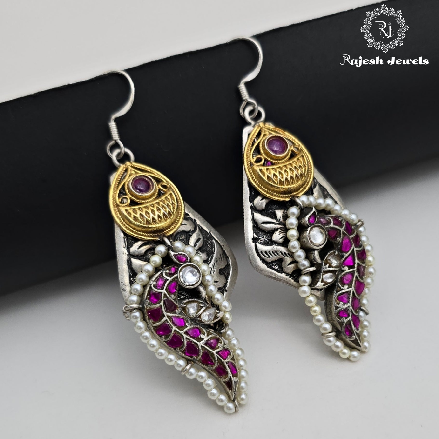 92.5 Pure Silver Oxidised Antique Finish Handmade Chandbali Earrings Studded With Semi Precious Stones