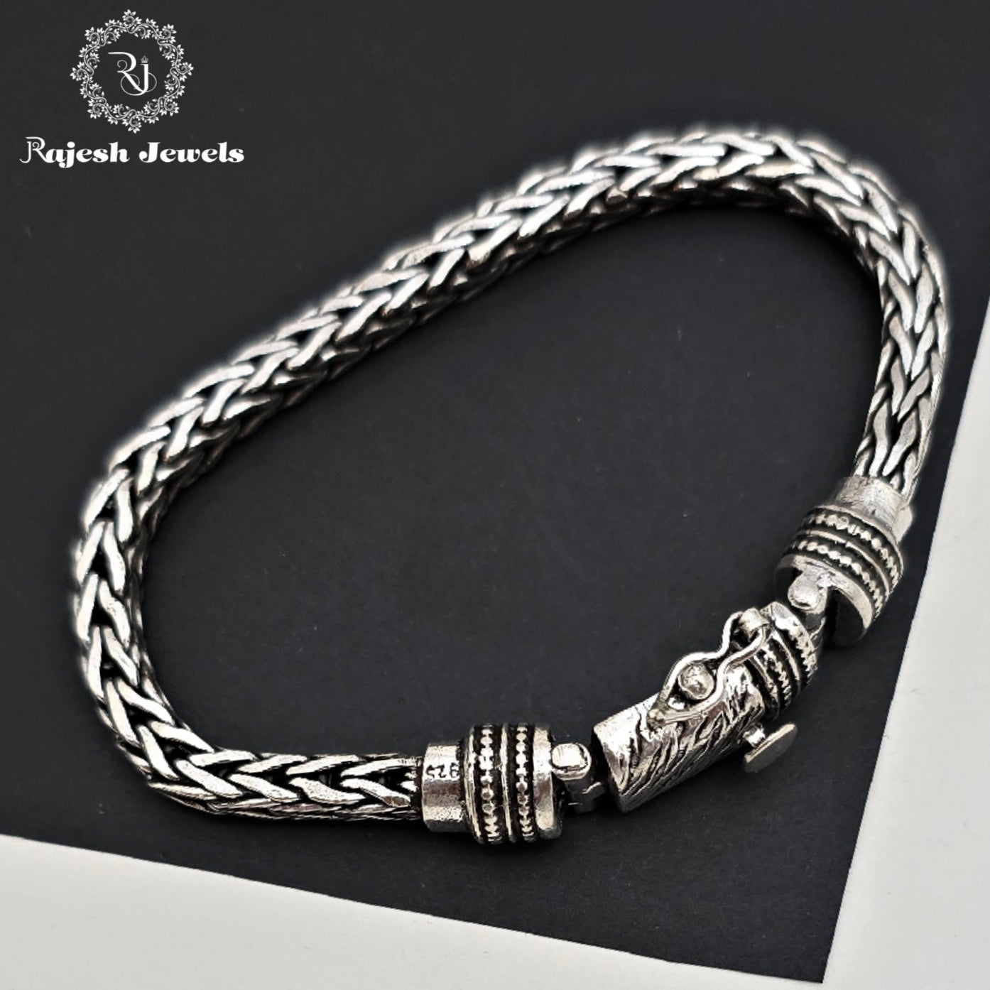 92.5 Pure Silver Oxidised Antique Finish Handmade Men's Bracelet