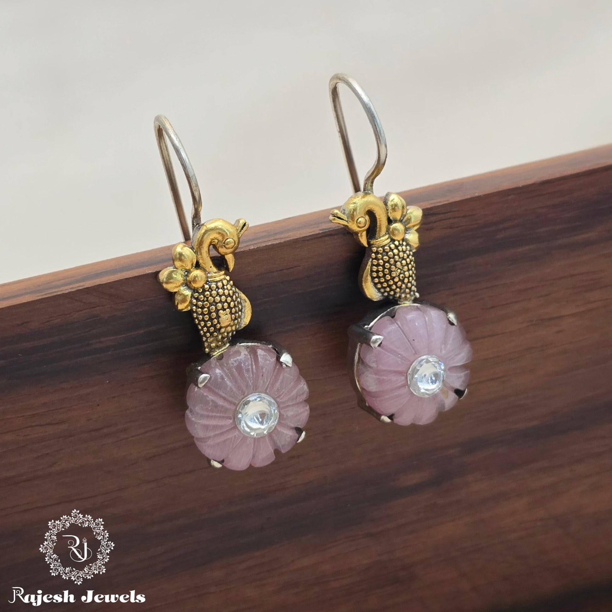 92.5 Pure Silver Oxidised Antique Finish Handmade Earrings Studded With Semi Precious Stone