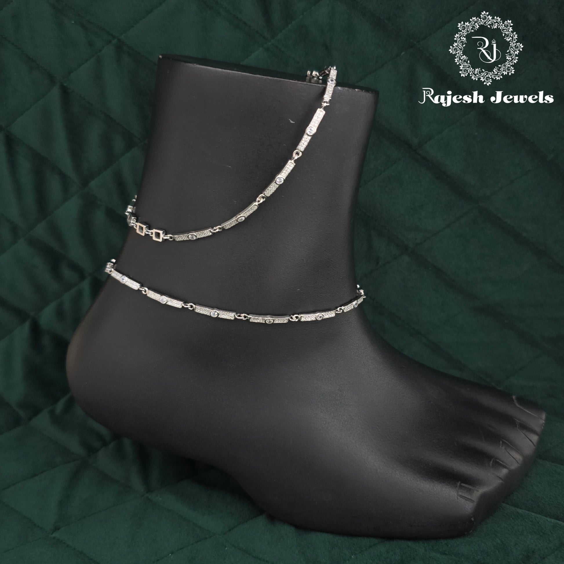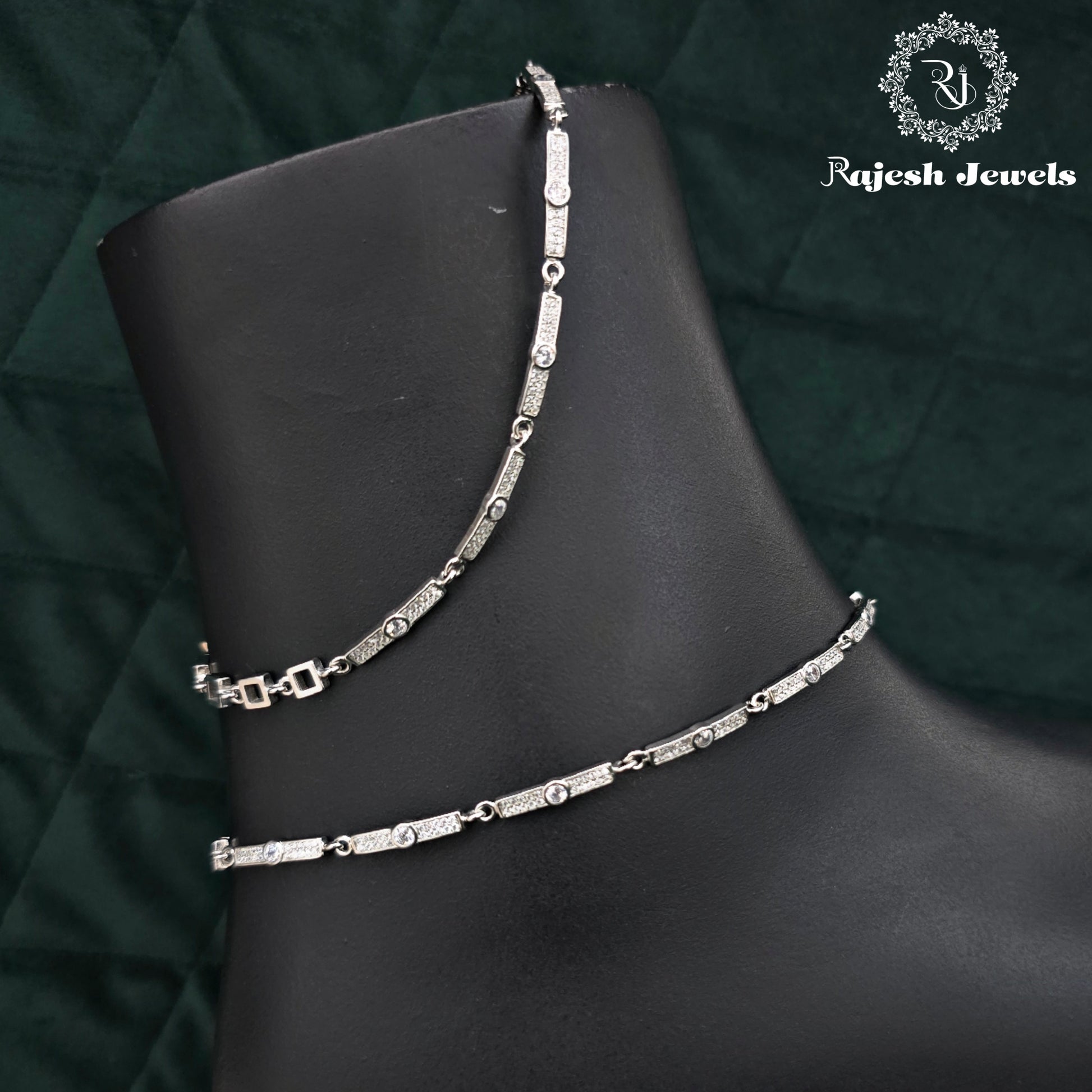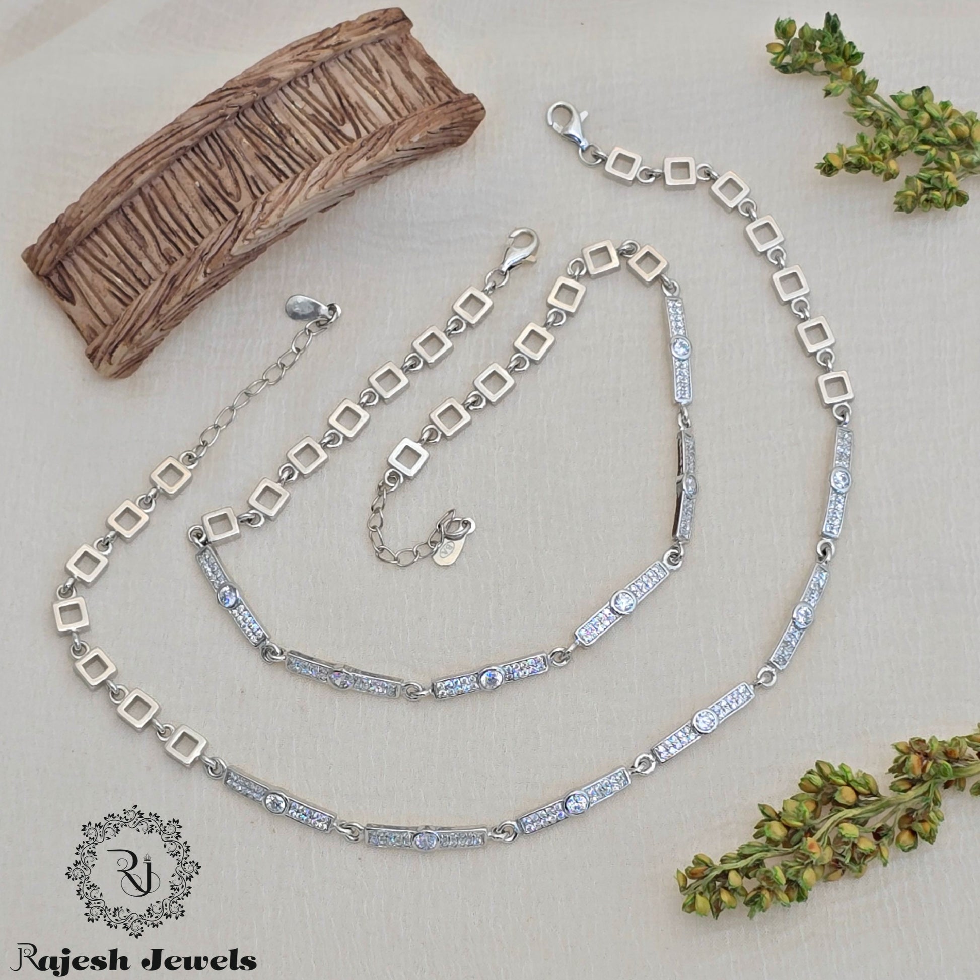 92.5 Pure Sterling Silver Cz Anklet Studded With Semi Precious Stones