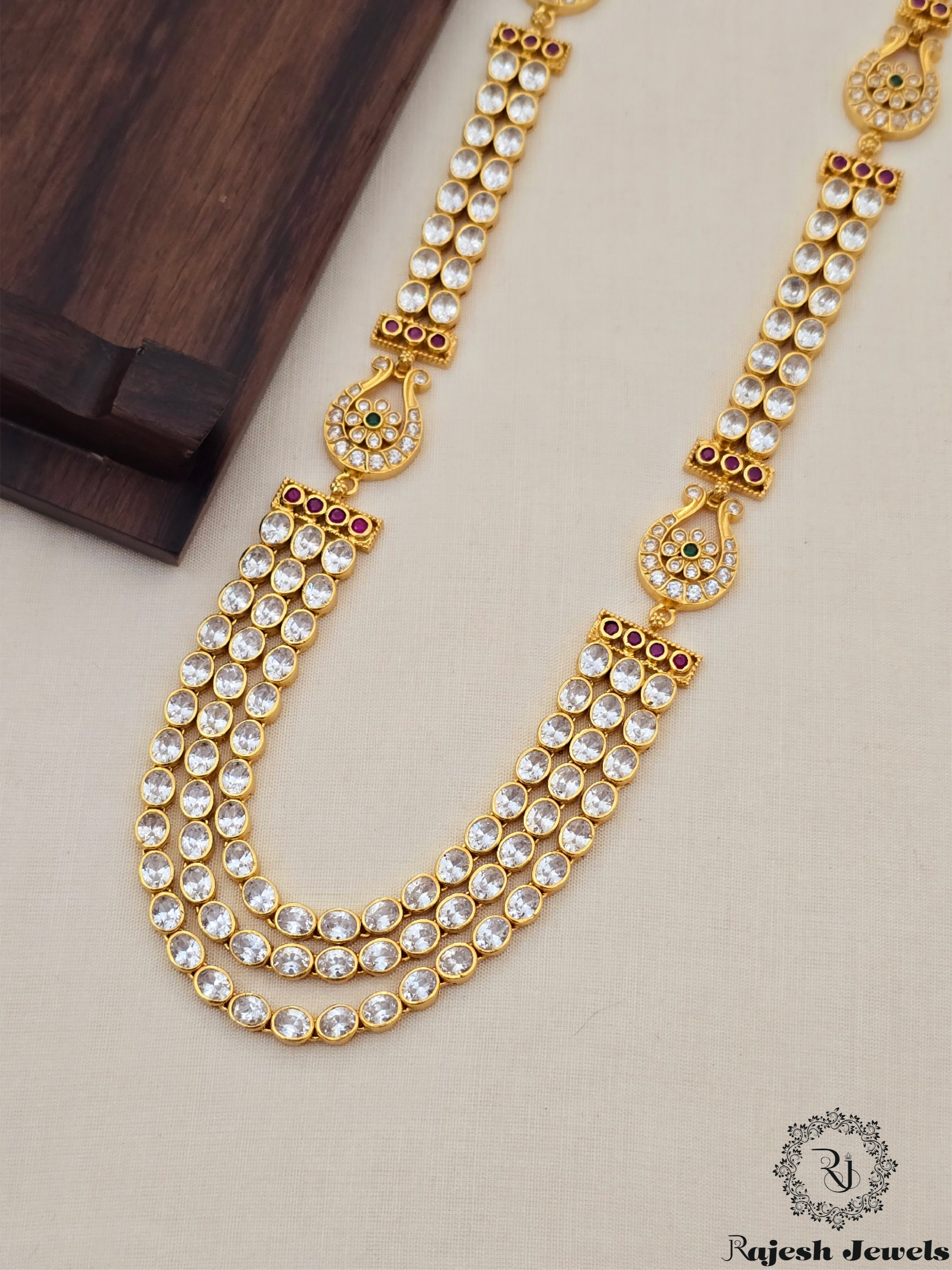 92.5 Pure Silver 22K Gold Plated Long Haram Studded With Semi Precious Stone