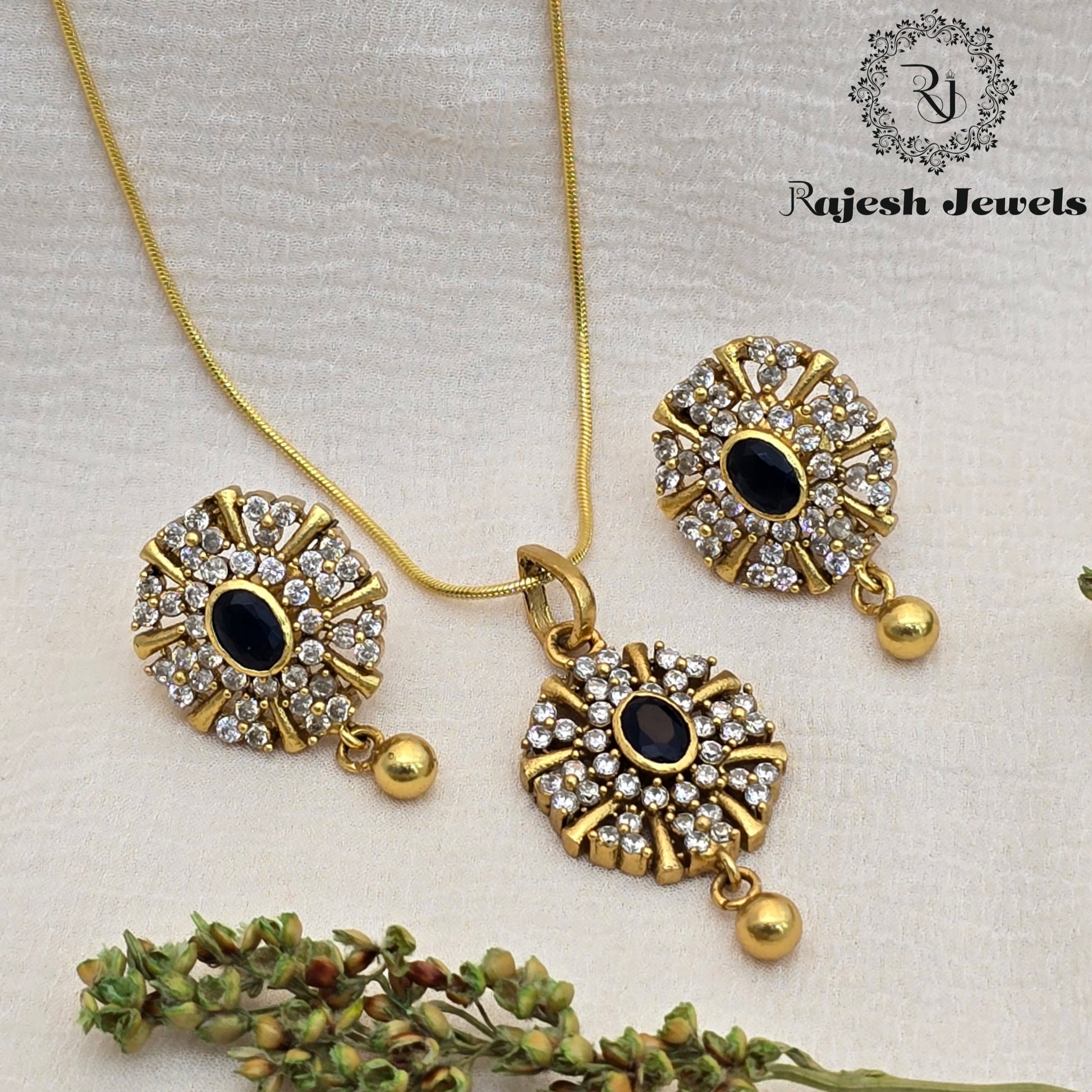Sparkling Blue Cz Silver Gold Plated Pendant Set
