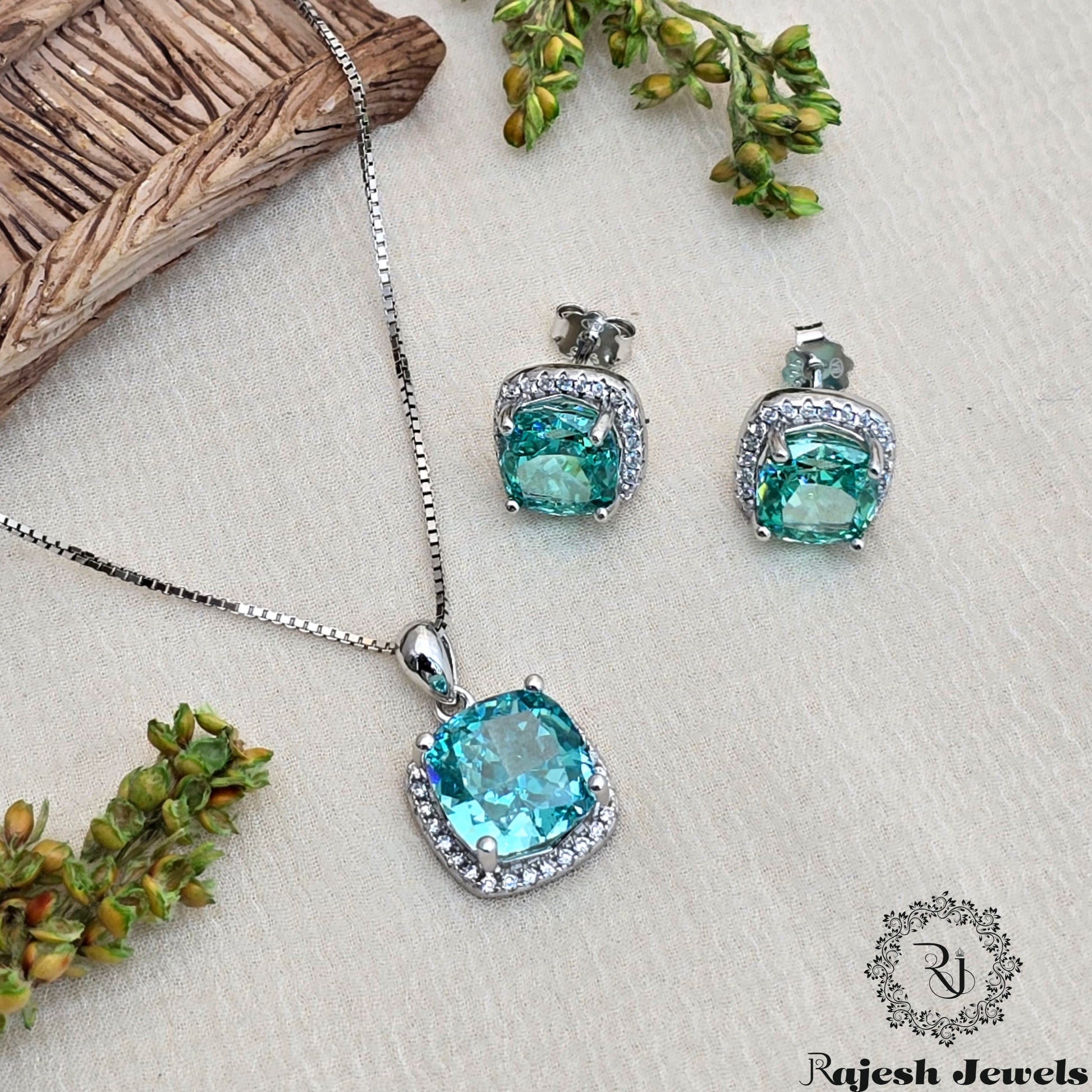 Sparkling Blue Silver Pendent Set