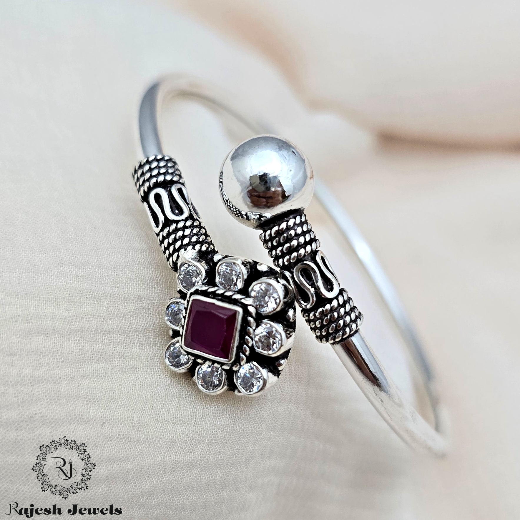92.5 Pure Silver Oxidised Antique Finish Handmade Hand Kada Studded With Semi Precious Stones