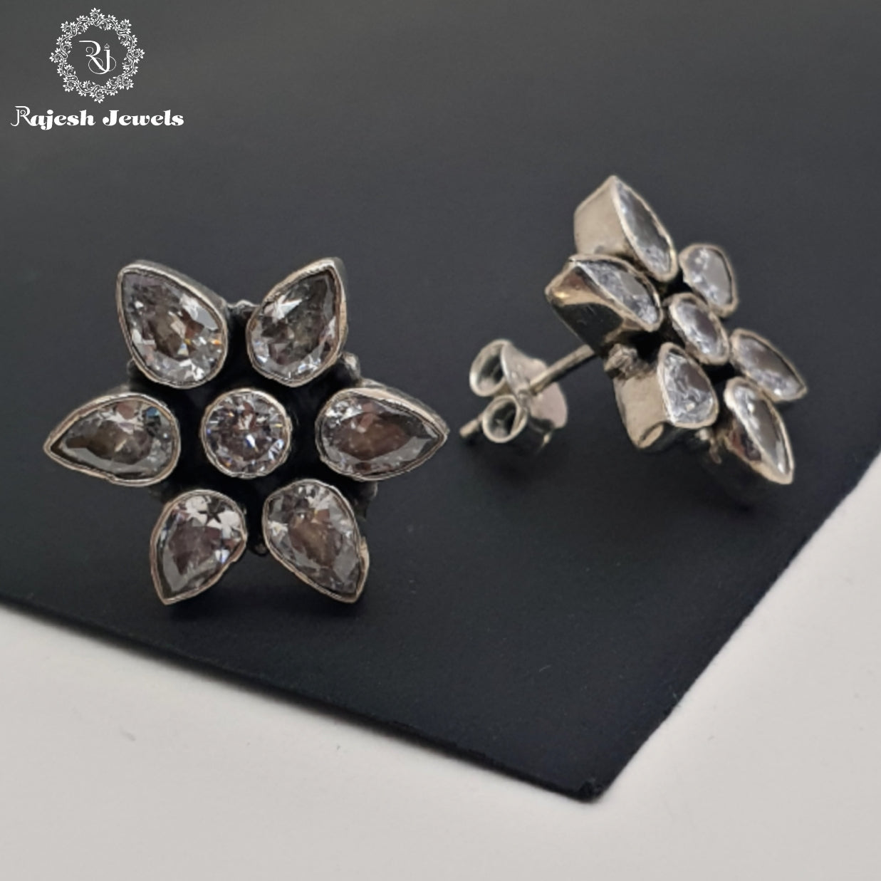 92.5 Pure Silver Oxidised Antique Finish Handmade Earrings Studded With Semi Precious Stones