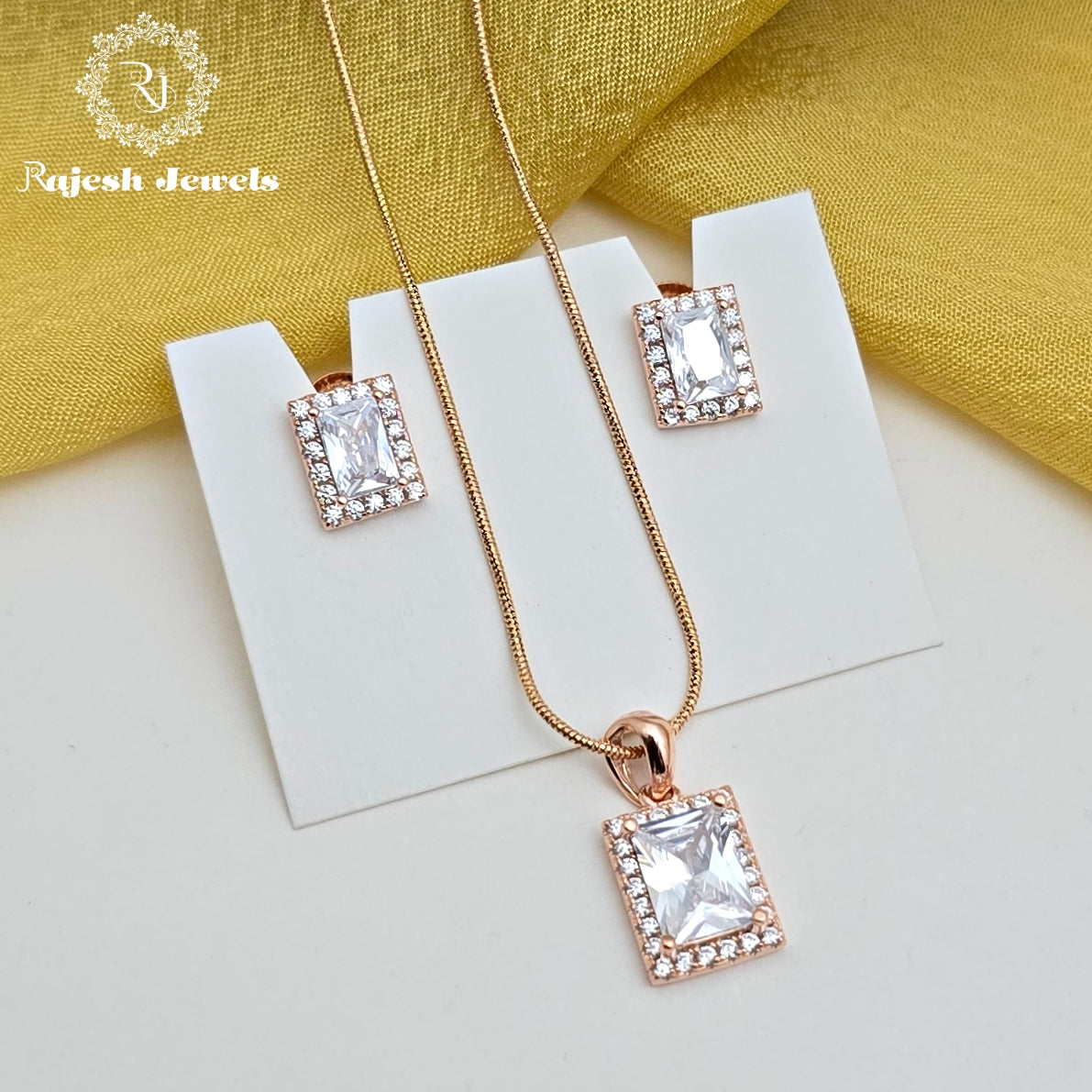 Sparkling Cz Rosegold Pendent Set