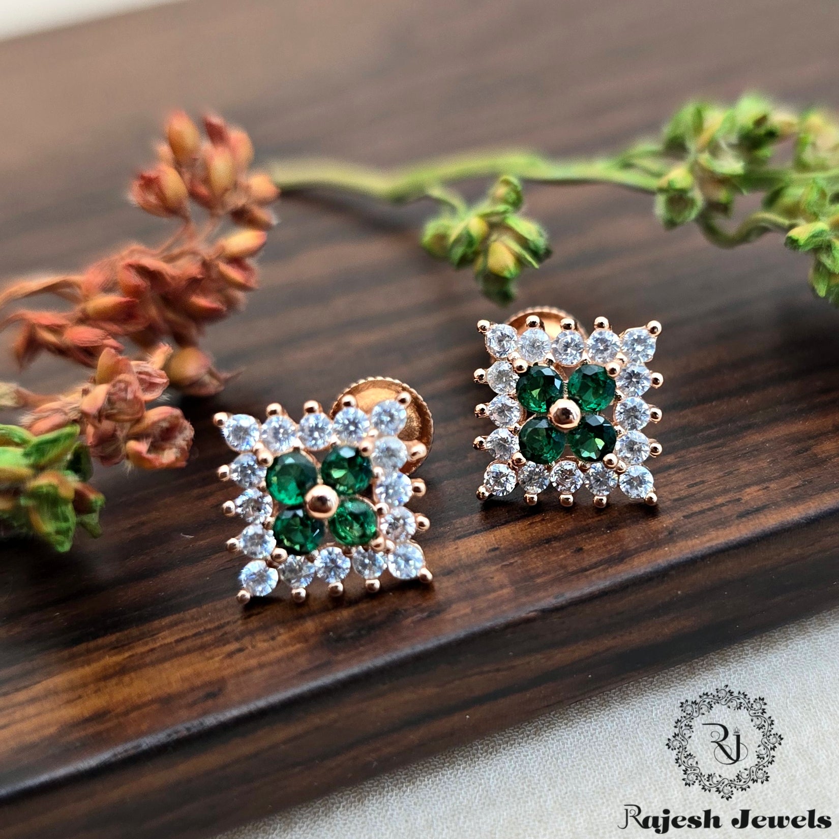 Sparkling Green Cz Rosegold South Screw Stud