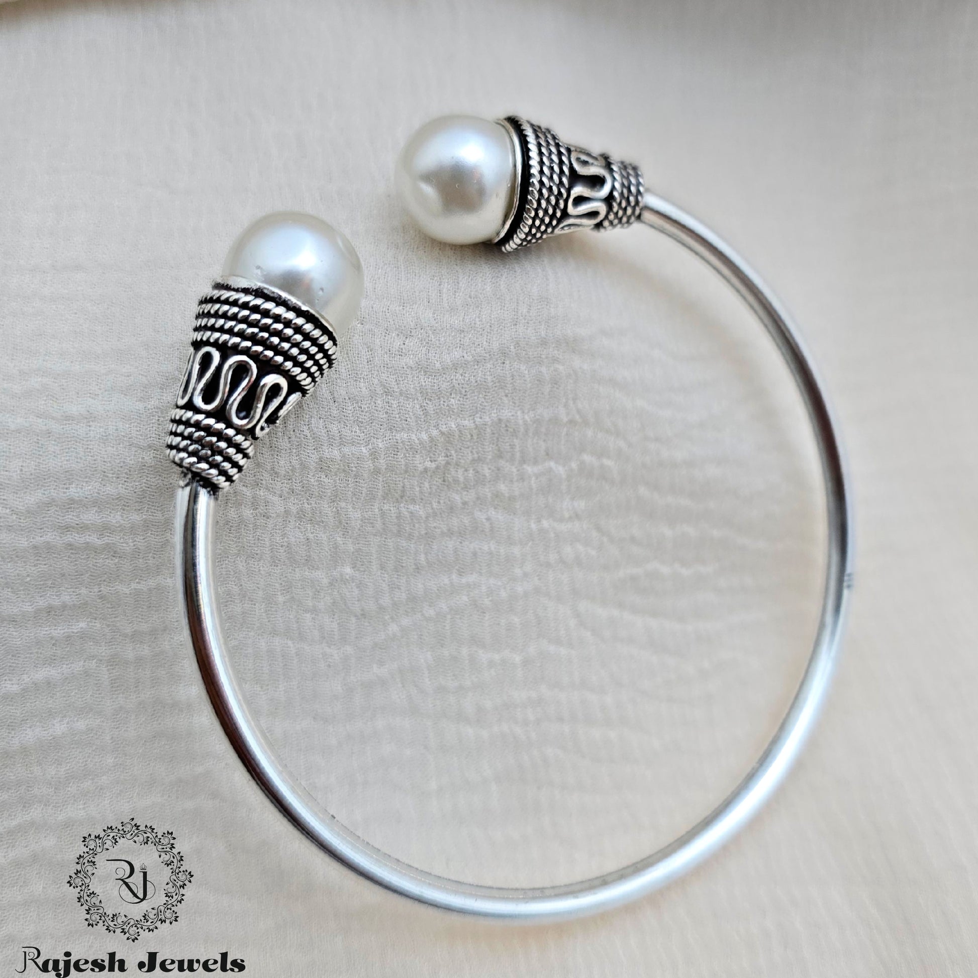 92.5 Pure Silver Oxidised Antique Finish Handmade Hand Kada Studded With Semi Precious Stones