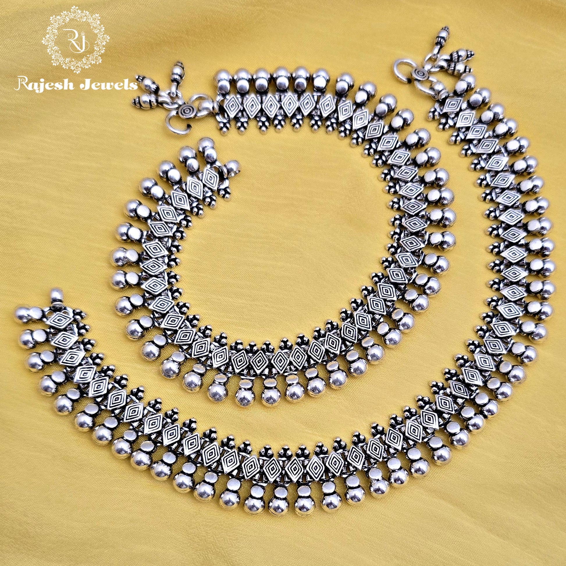 92.5 Pure Silver Oxidised Antique Finish Handmade Anklet.