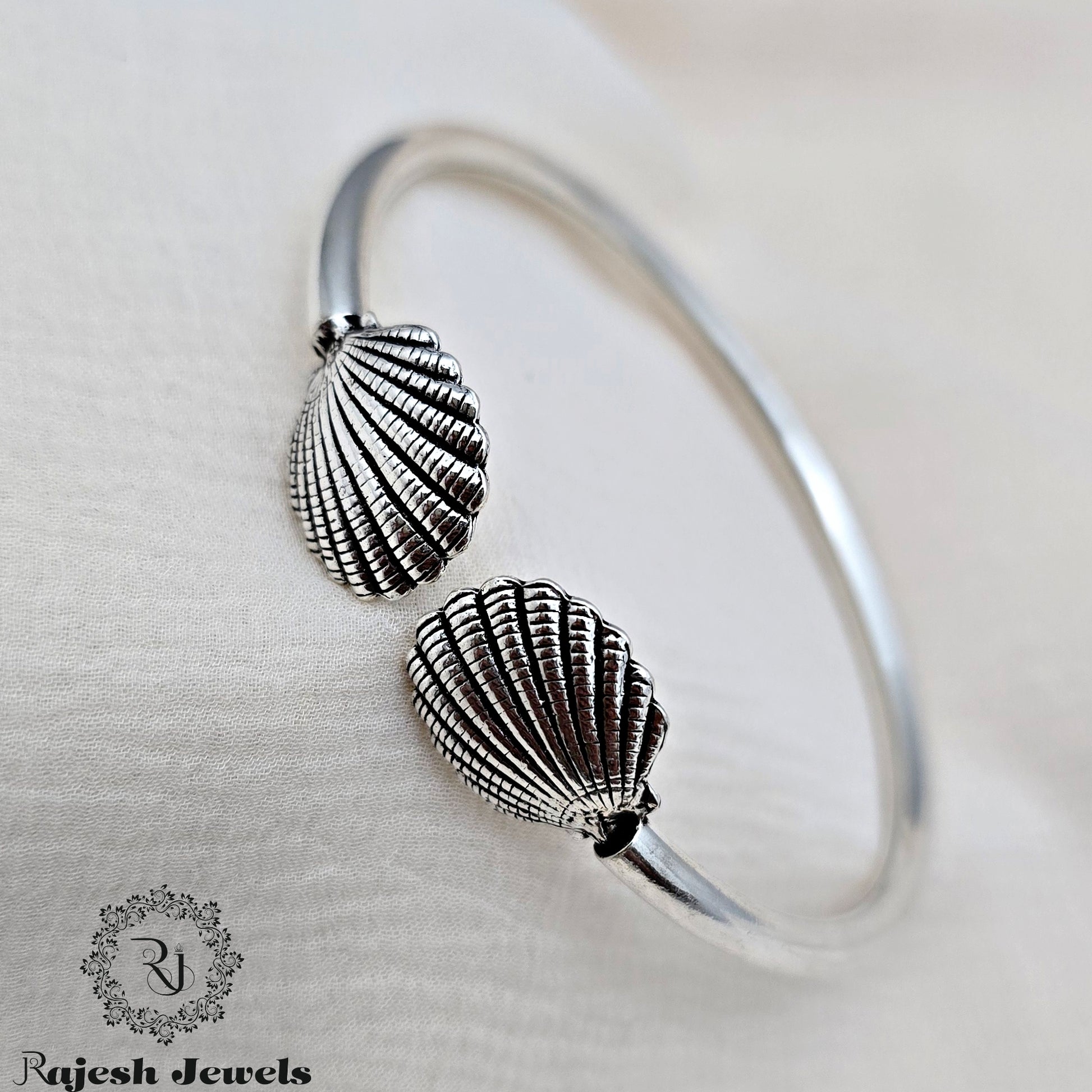 Splendid Shell Cap Oxidised Hand Kada