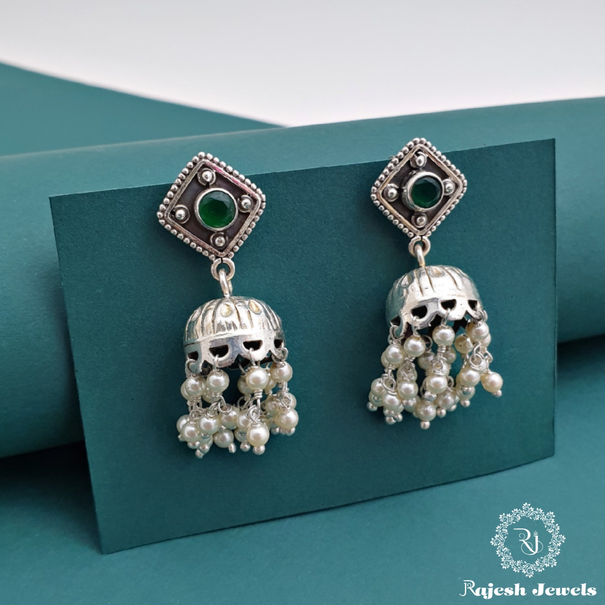 92.5 Pure Silver Oxidised Antique Finish Handmade Earrings Studded With Semi Precious Stones