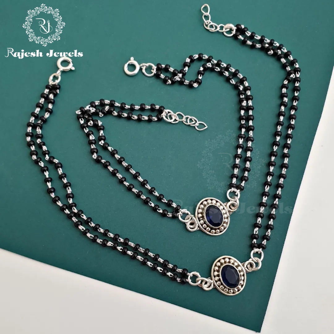 92.5 Pure Sterling Silver Black Beads Anklets Studded With Semi Precious Stones
