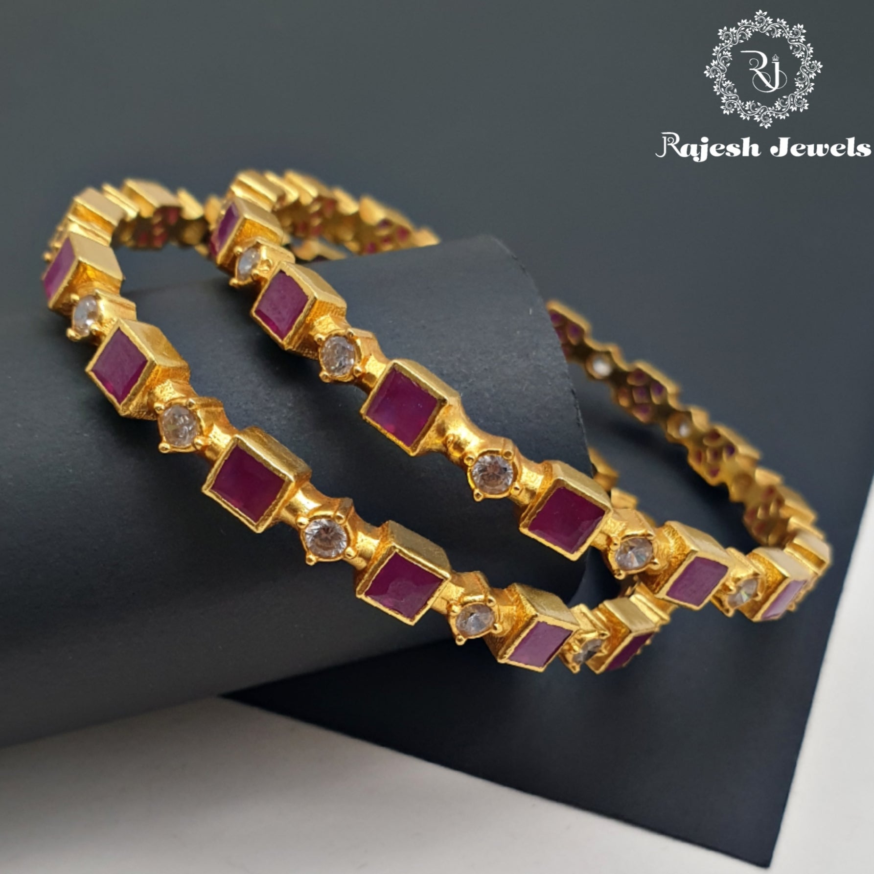 92.5 Pure Silver 22K Gold Plated Handmade Bangles Studded With Semi Precious Stones