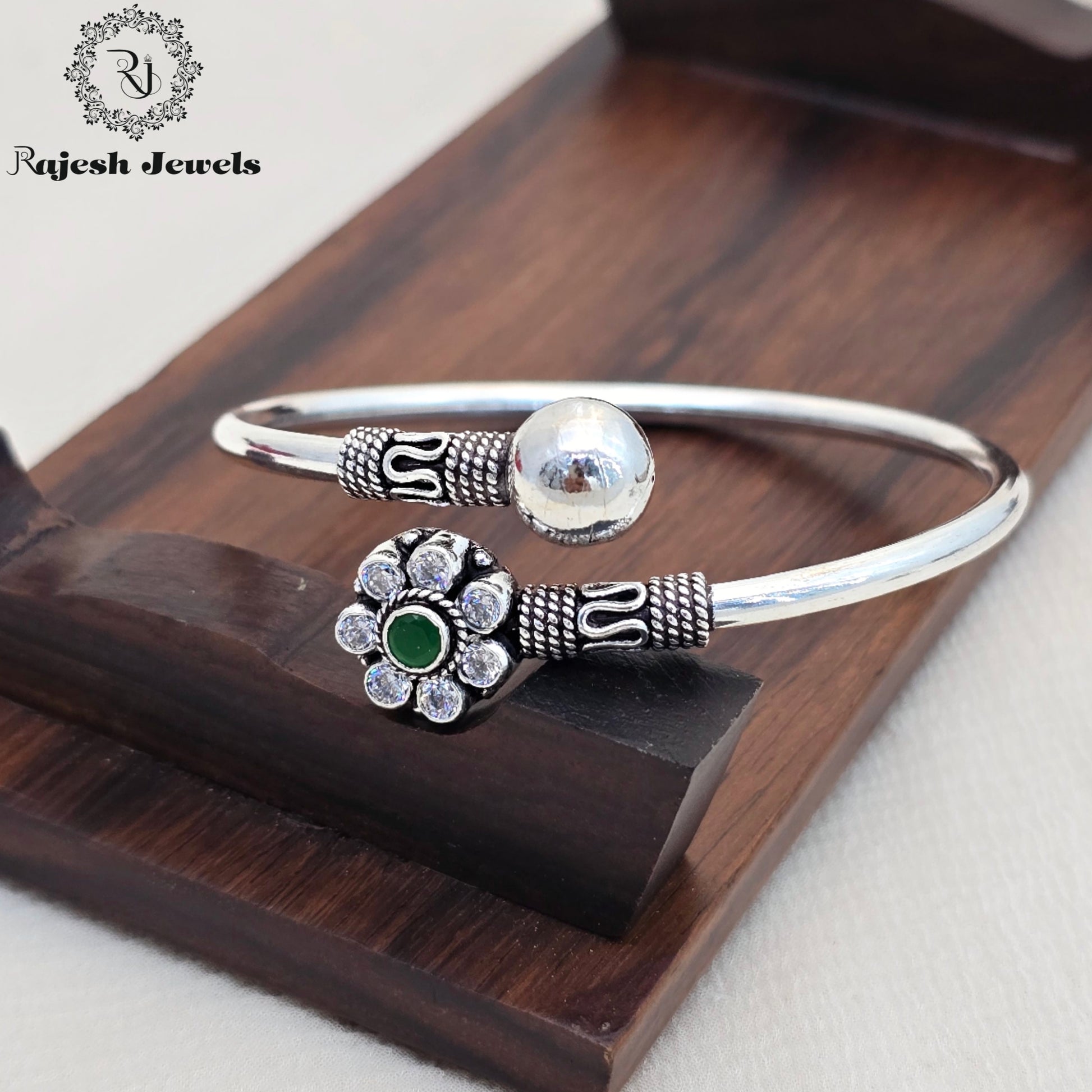 92.5 Pure Silver Oxidised Antique Finish Handmade Hand Kada Studded With Semi Precious Stones