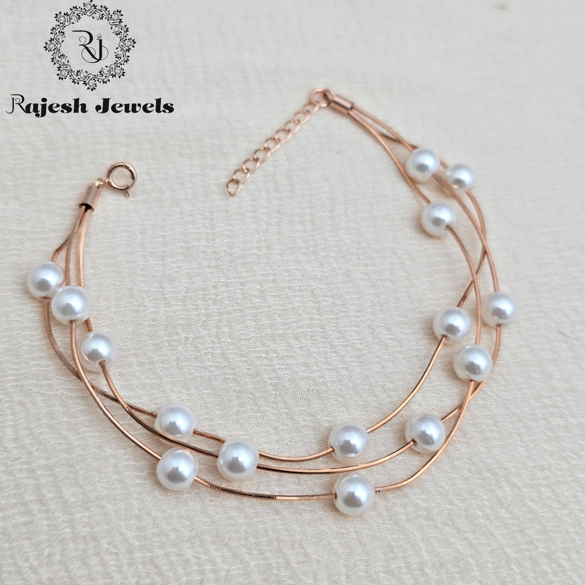 Swirling Rosegold Pearl Triple Layer Bracelet