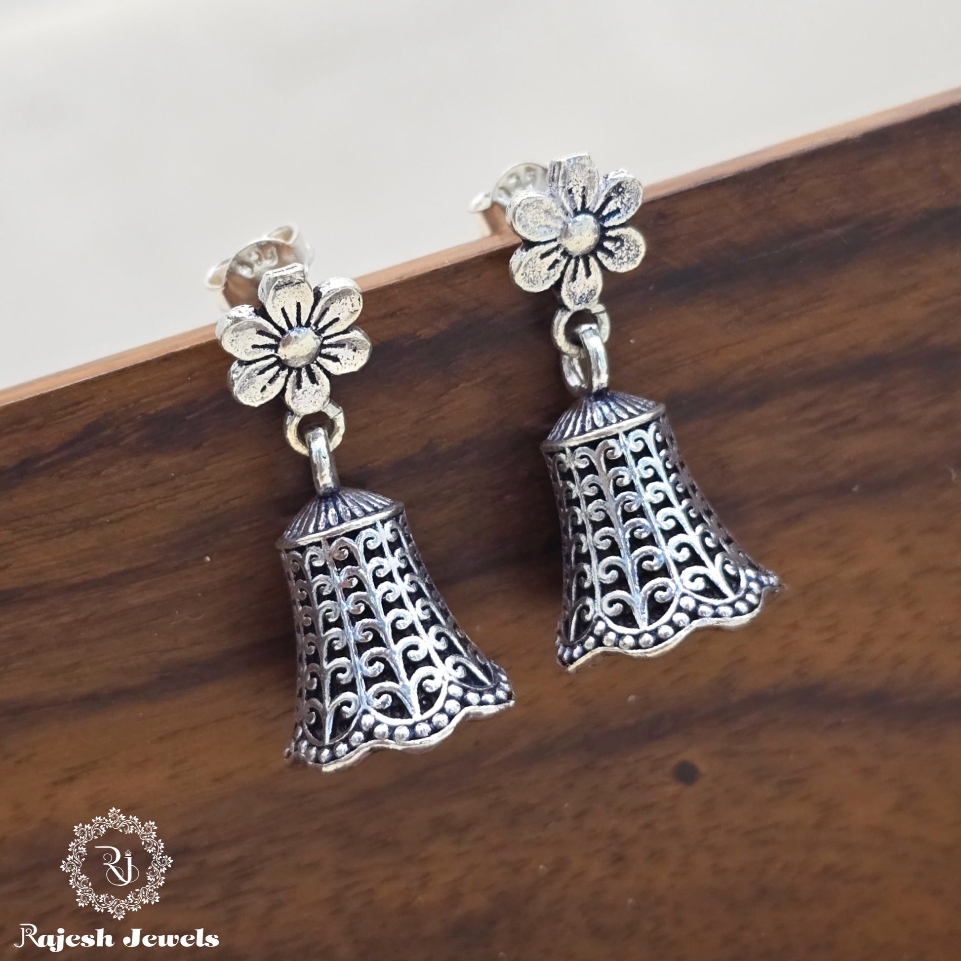 92.5 Pure Silver Oxidised Antique Finish Handmade Jumka Earrings
