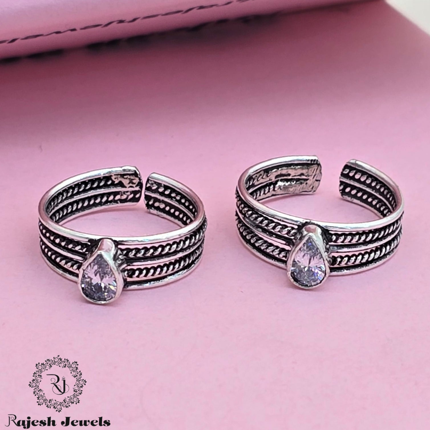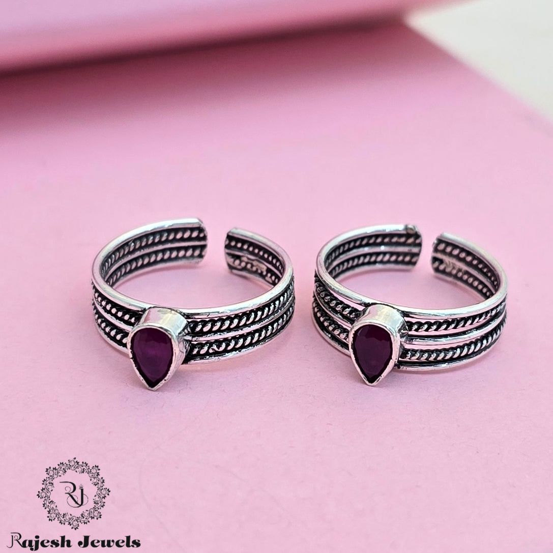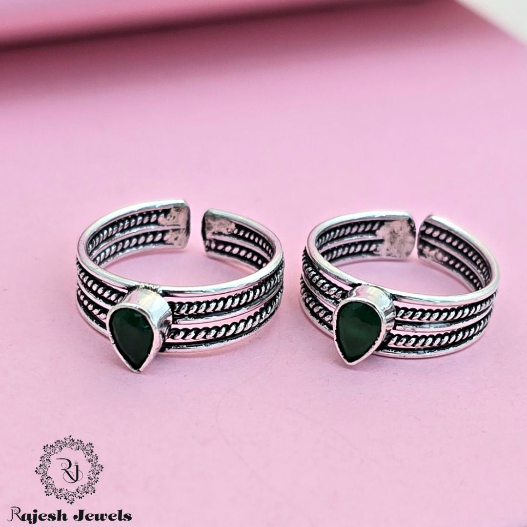 92.5 Pure Silver Oxidised Antique Finish Handmade Toerings Studded With Semi Precious Stones