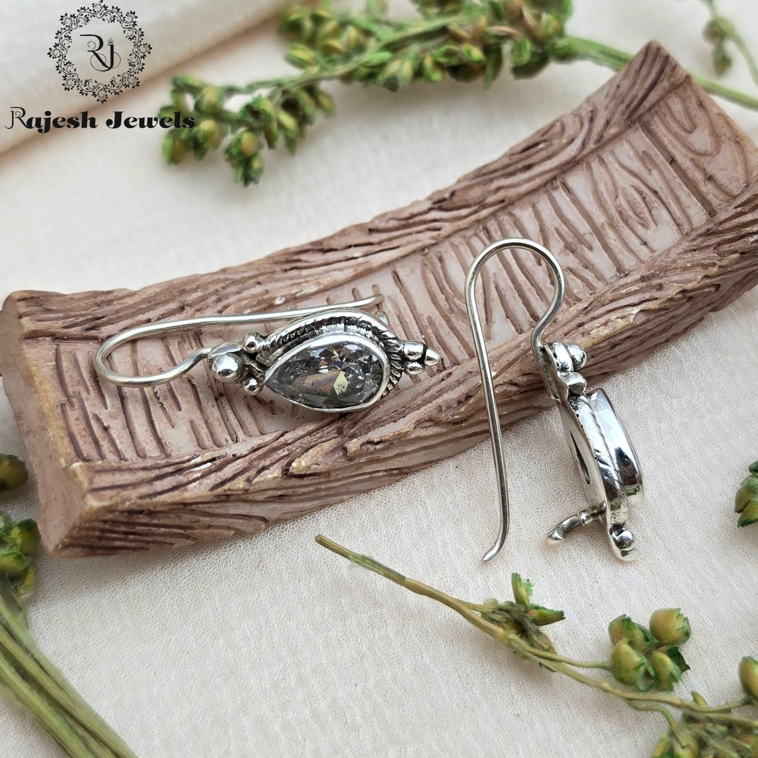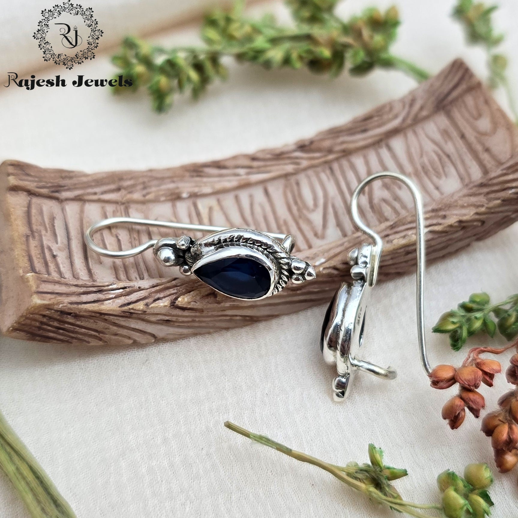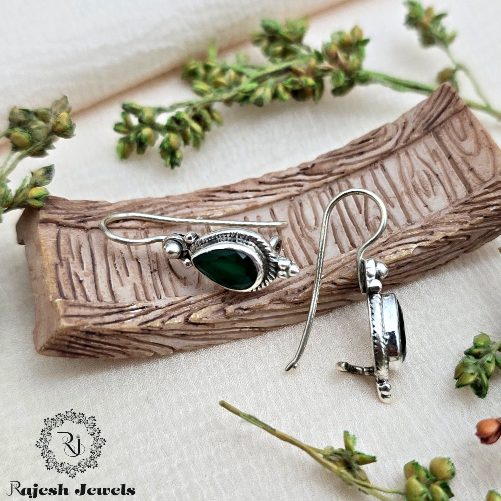 92.5 Pure Oxidised Silver Antique Finish Fish Hook Earrings Studded With Semi Precious Stones