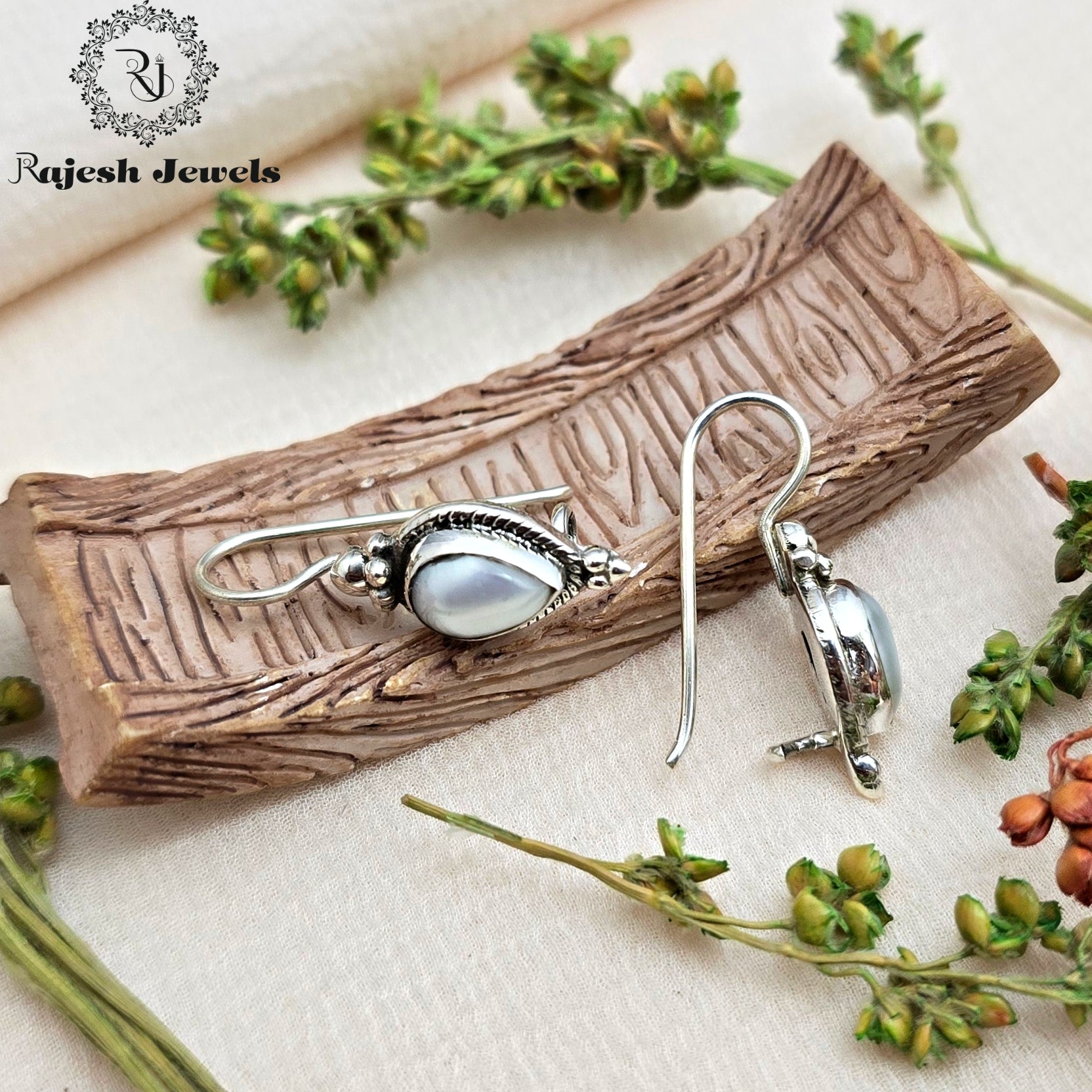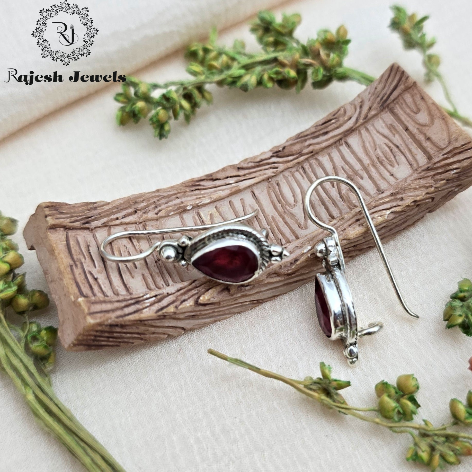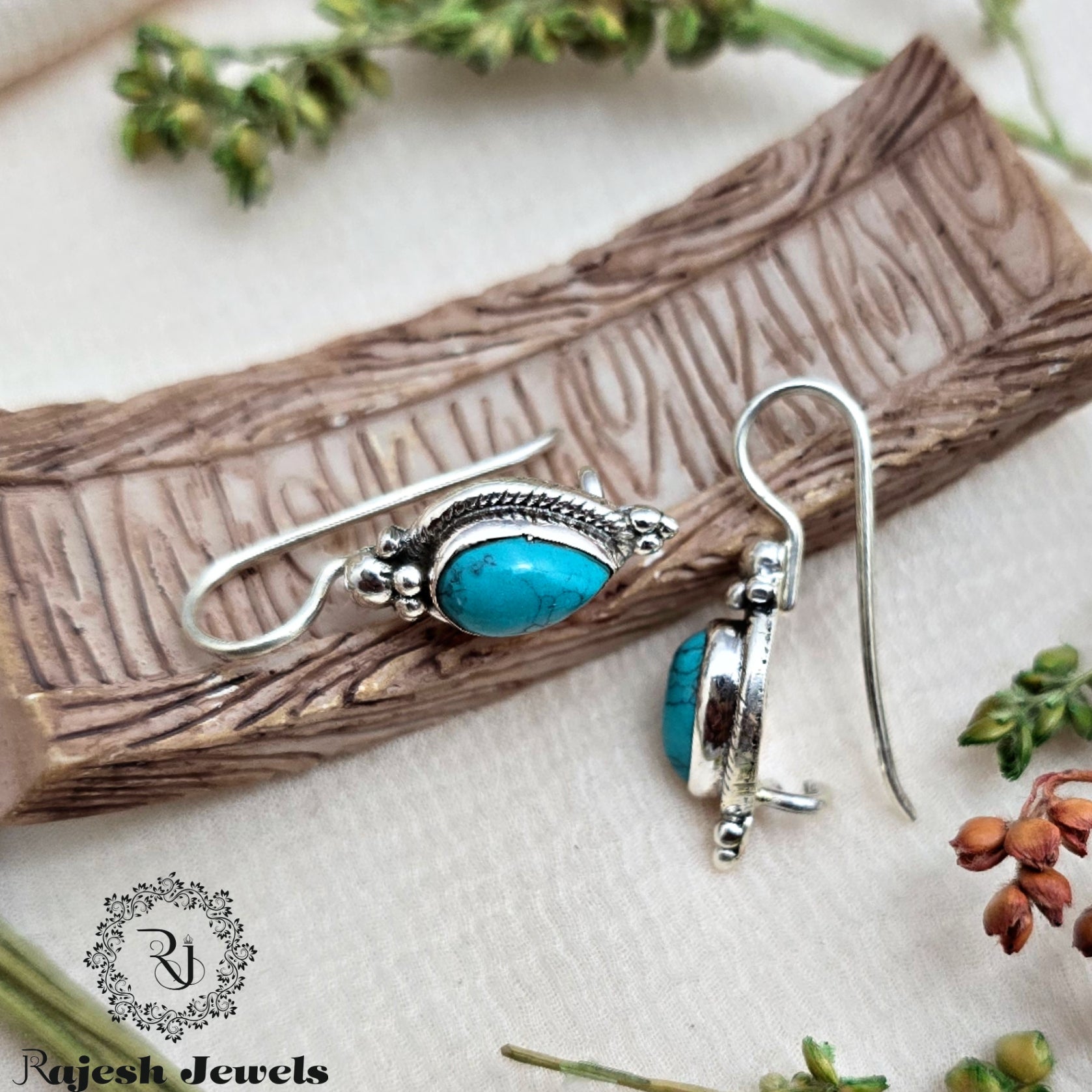 92.5 Pure Oxidised Silver Antique Finish Fish Hook Earrings Studded With Semi Precious Stones