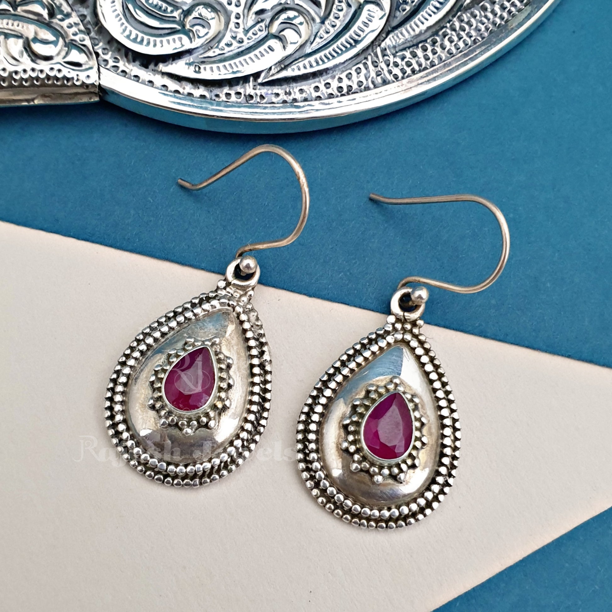 92.5 Pure Silver Oxidised Antique Finish Hanging Earrings Studded With Semi Precious Stones