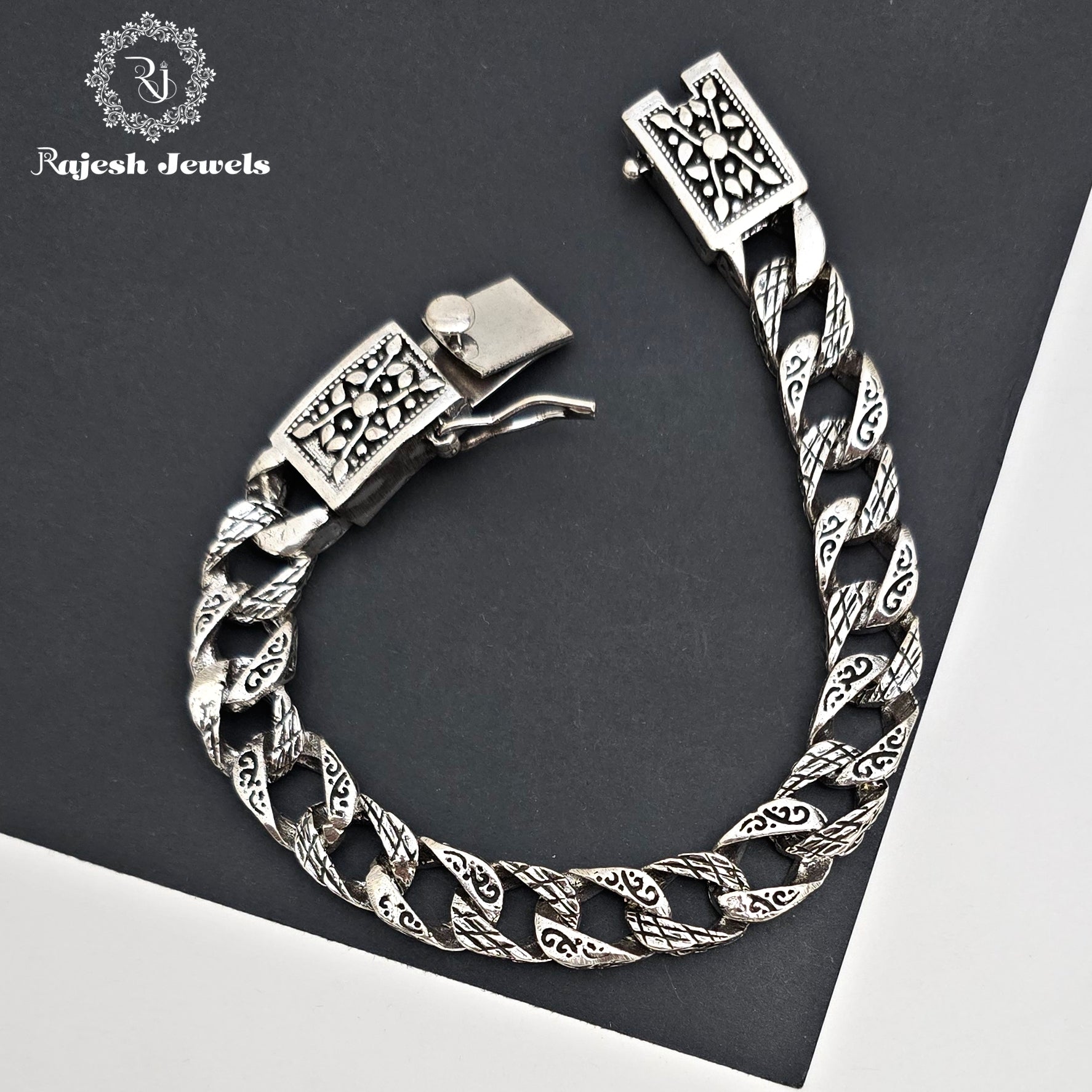 92.5 Pure Silver Oxidised Antique Finish Handmade Men's Bracelet