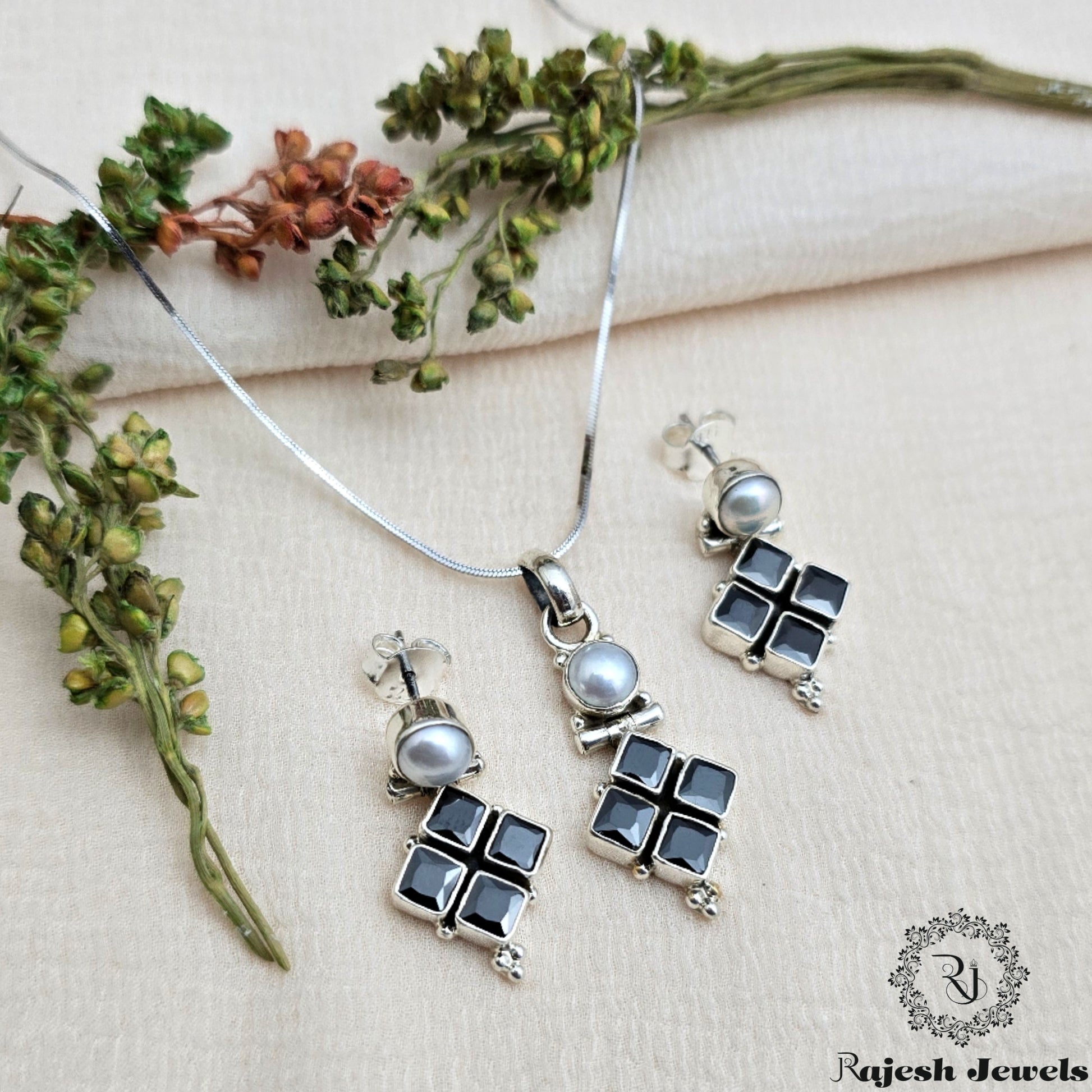 92.5 Pure Silver Oxidised Antique Finish Handmade Cutstone Pendant Set With Chain