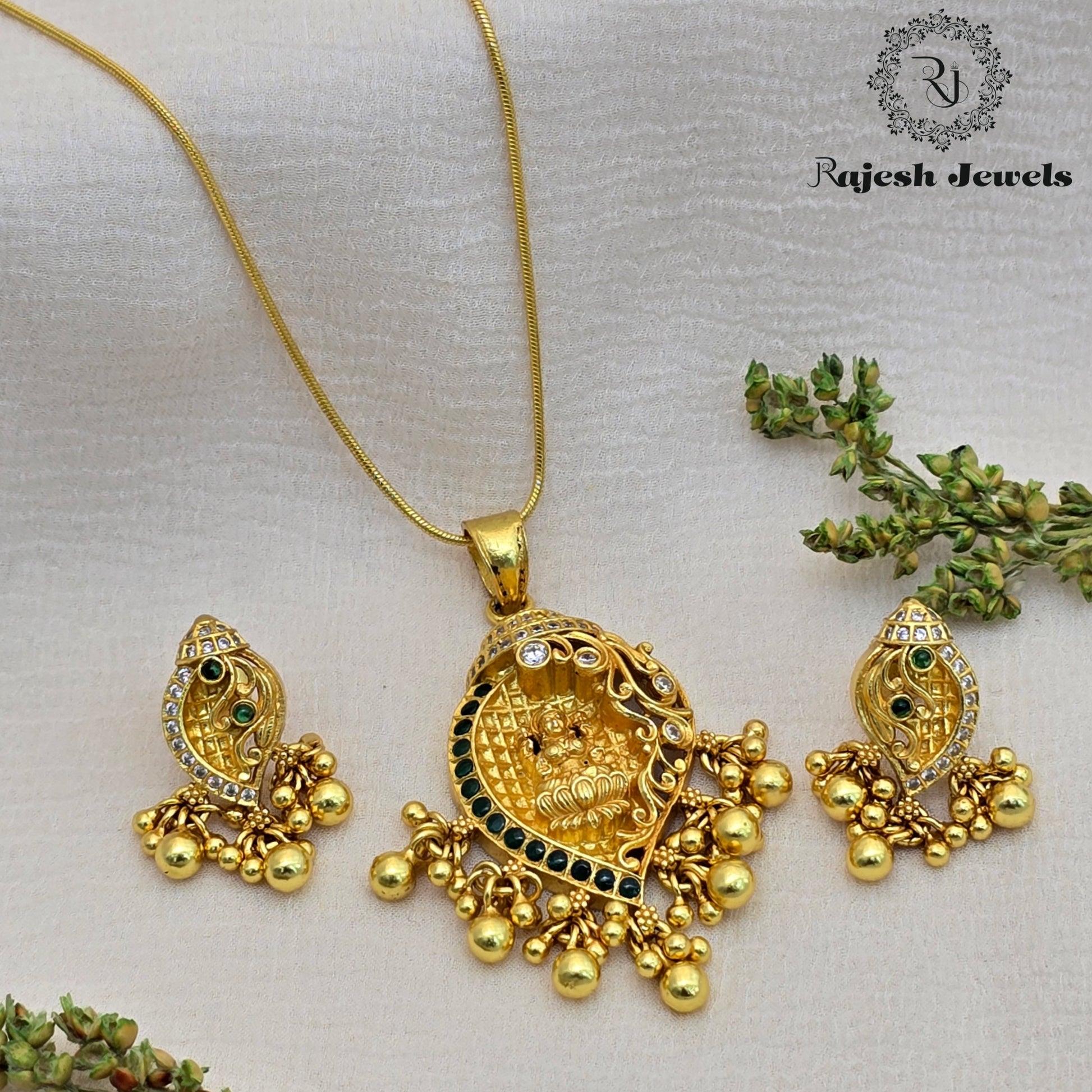Traditional Lakshmi Silver Gold Plated Pendant Set