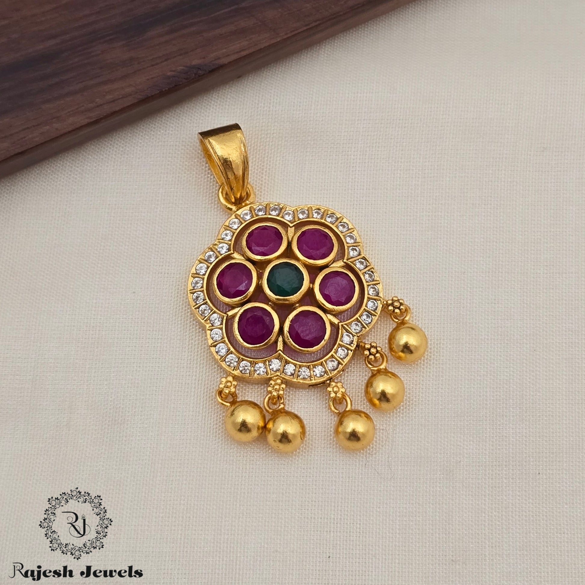 92.5 Pure Silver 22K Gold Plated Pendant Studded With Semi Precious Stones