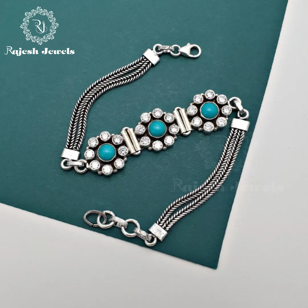 92.5 Pure Silver Oxidised Antique Finish Handmade Bracelet Studded With Semi Precious Stones