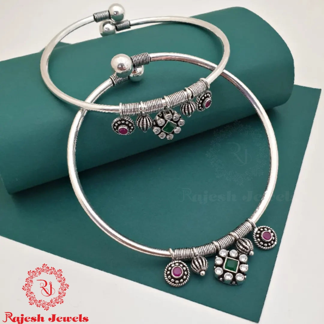 92.5 Pure Silver Oxidised Antique Finish Handmade Ankle Kada Studded With Semi Precious Stones