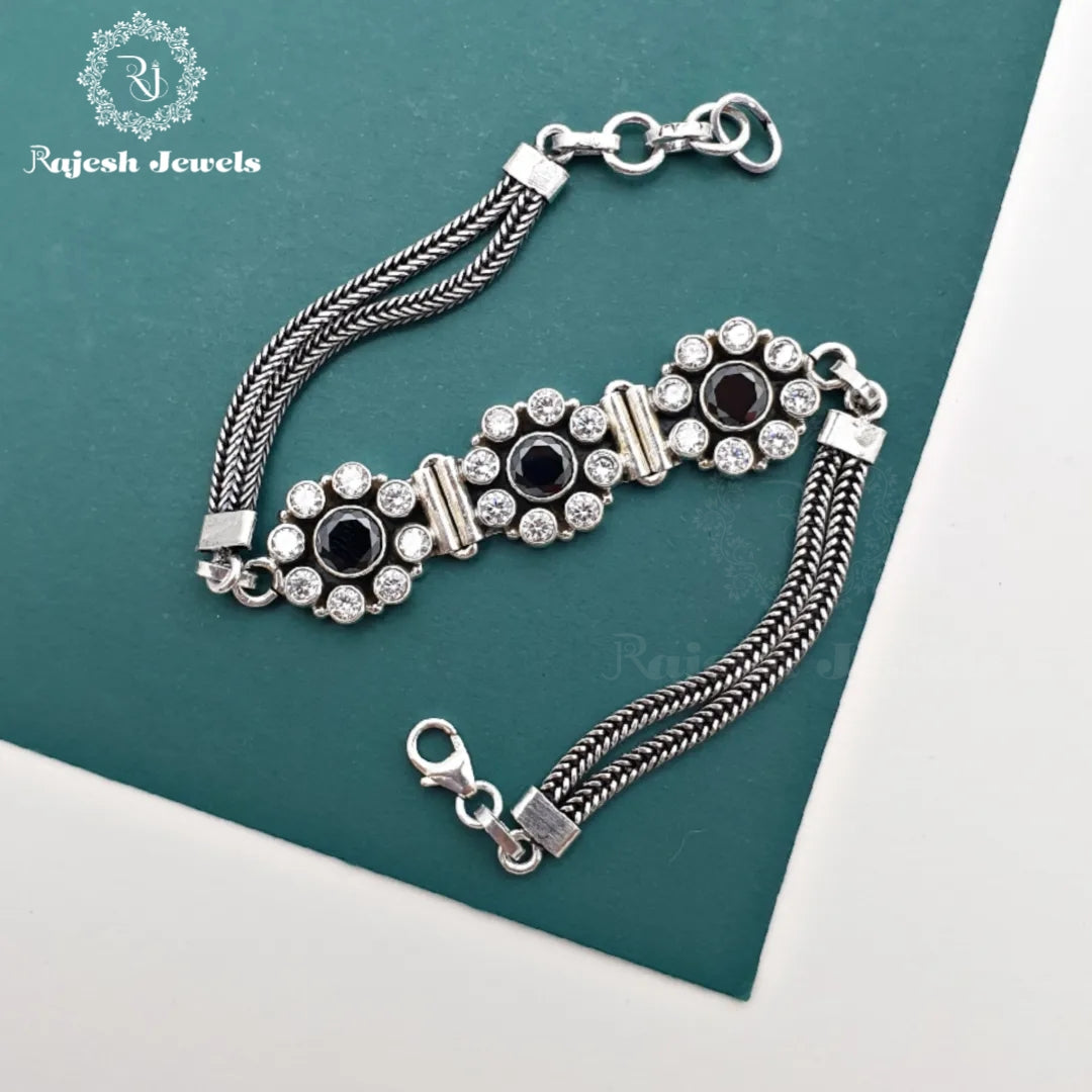 92.5 Pure Silver Oxidised Antique Finish Handmade Bracelet Studded With Semi Precious Stones