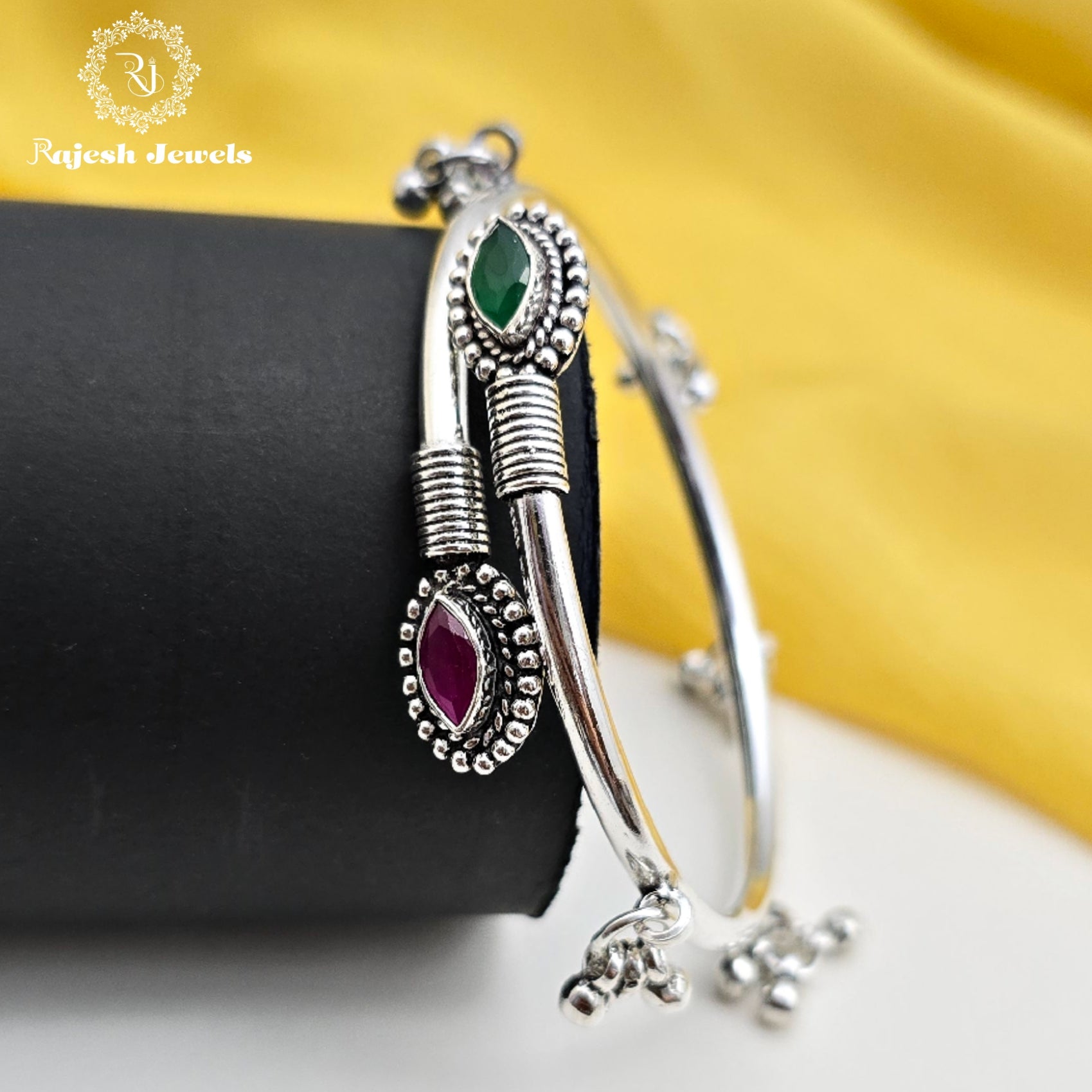 92.5 Pure Silver Oxidised Antique Finish Handmade Cutstone Hand Kada