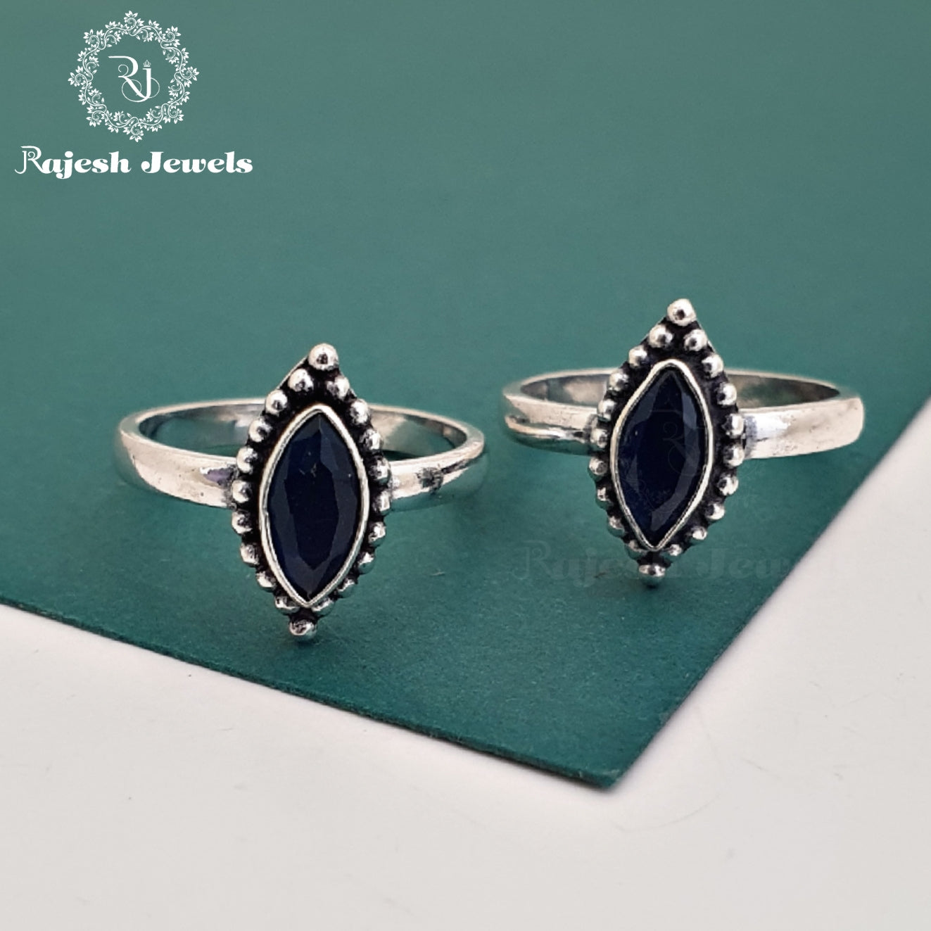 92.5 Pure Silver Oxidised Antique Finish Handmade Toerings Studded With Semi Precious Stones