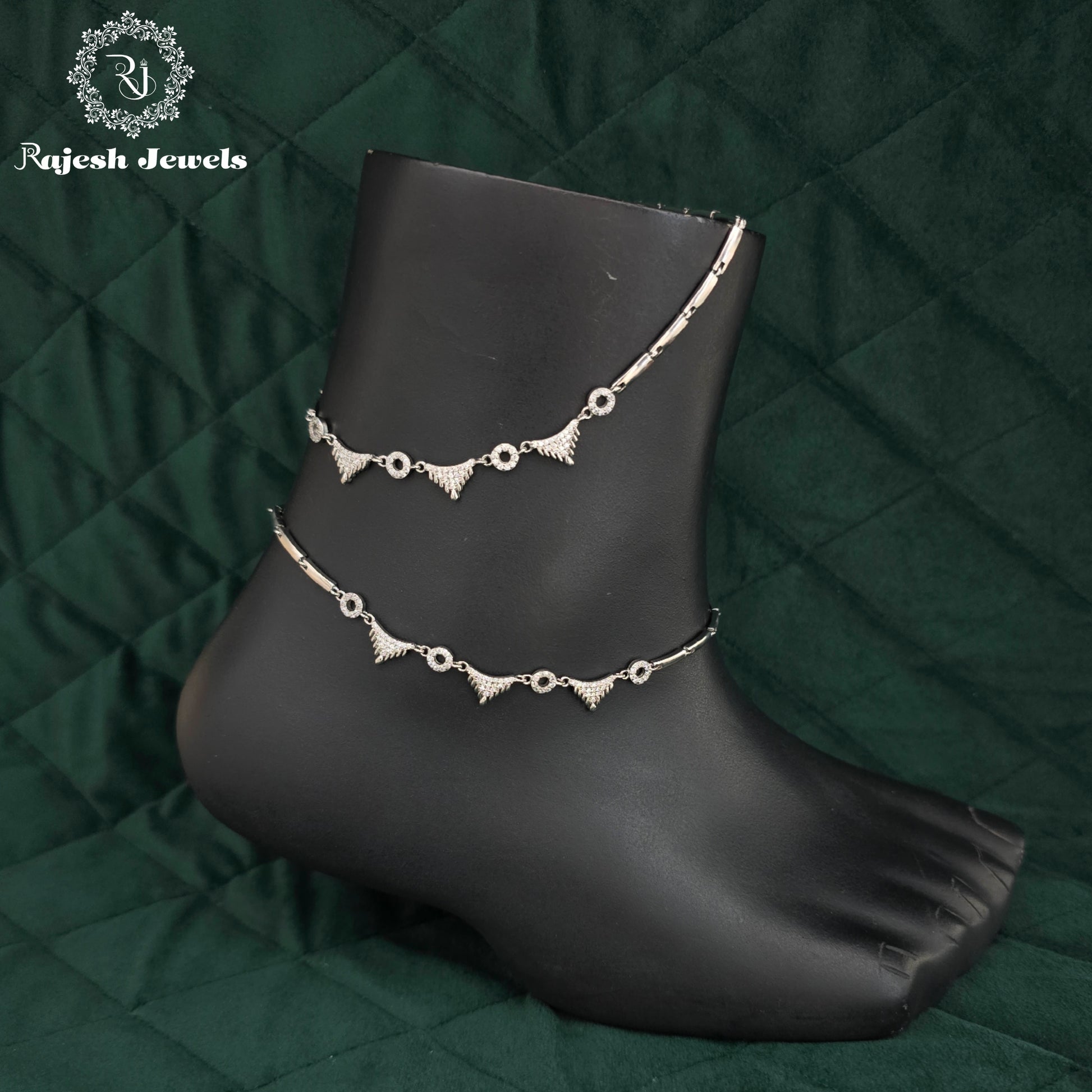92.5 Pure Sterling Silver Cz Anklet Studded With Semi Precious Stones