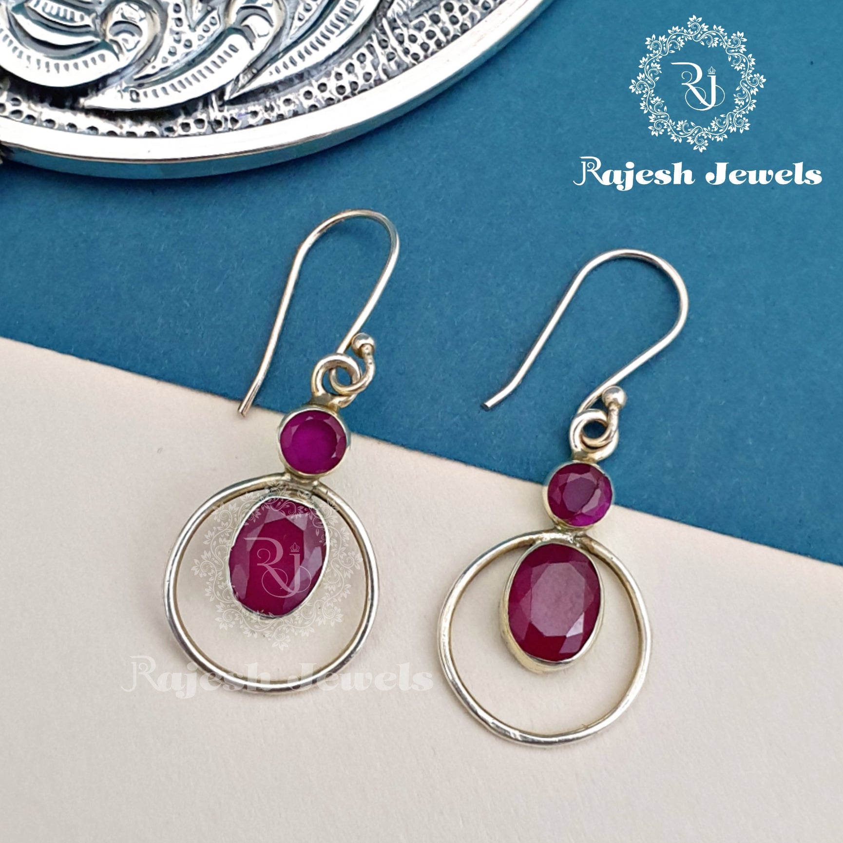 92.5 Pure Silver Oxidised Antique Finish Hanging Earrings Studded With Semi Precious Stones