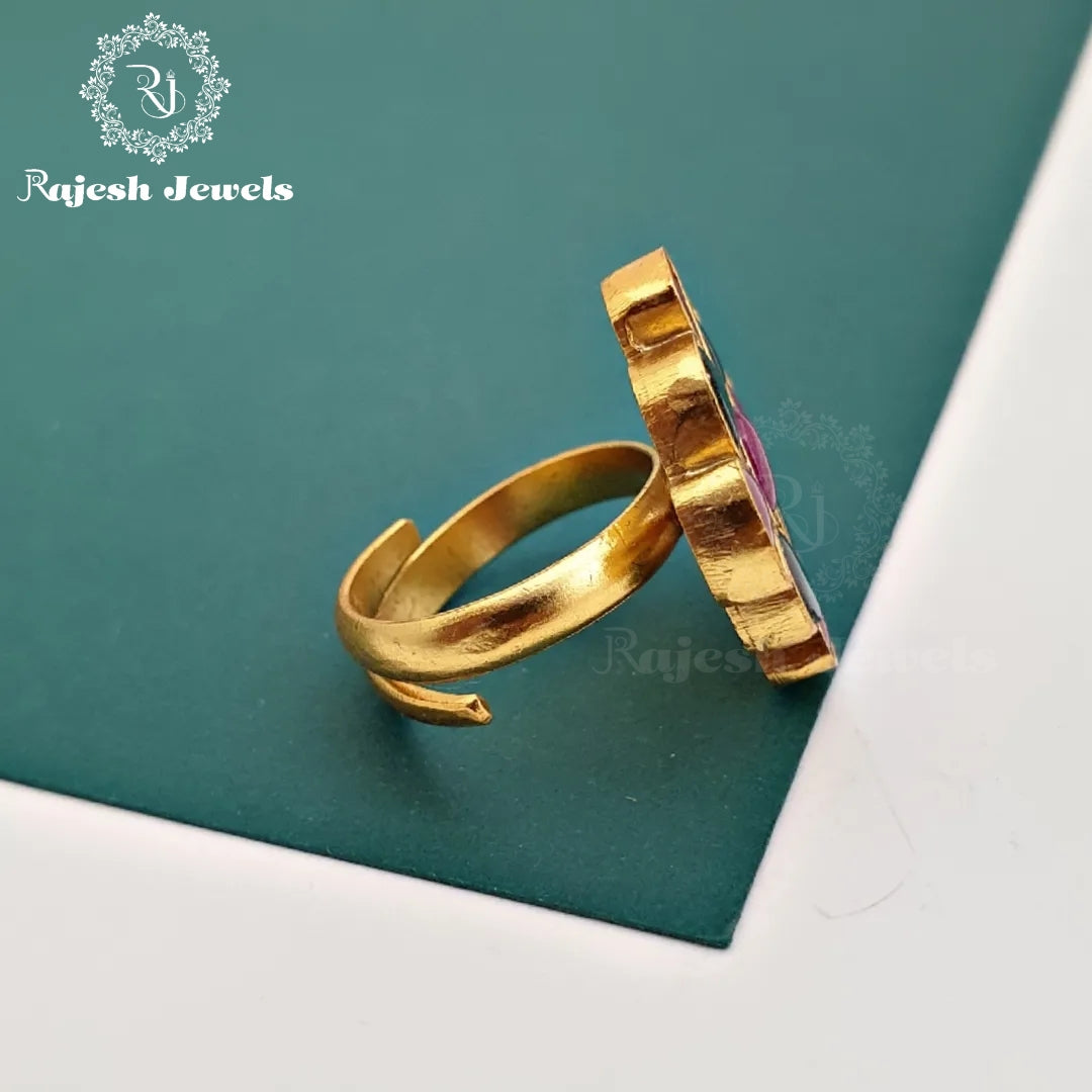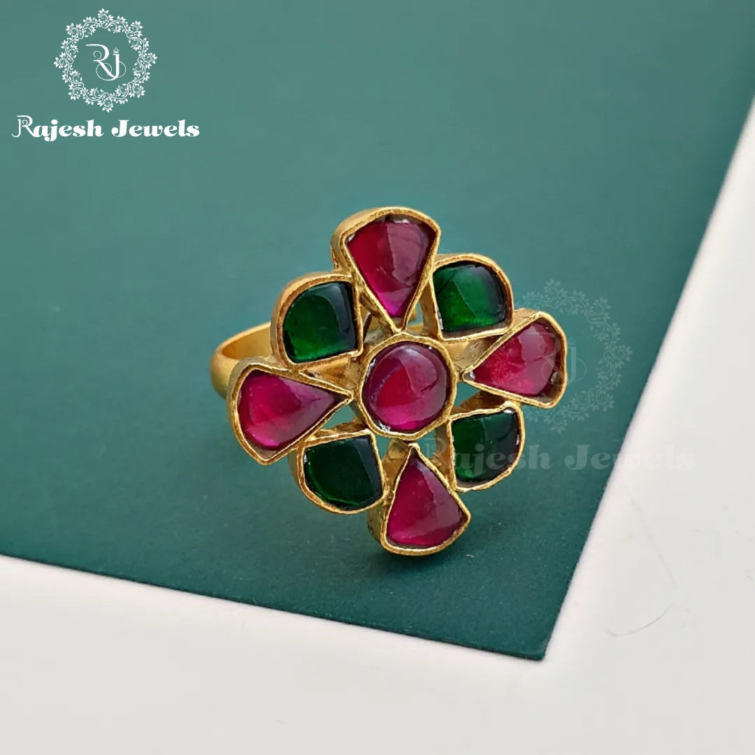 92.5 Pure Silver 22K Gold Plated Finger Ring Studded With Semi Precious Stones