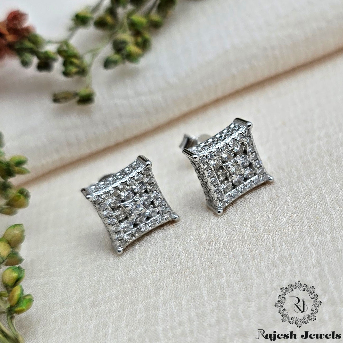 92.5 Pure Sterling Silver Cz Stud Earrings Studded With Semi Precious Stone
